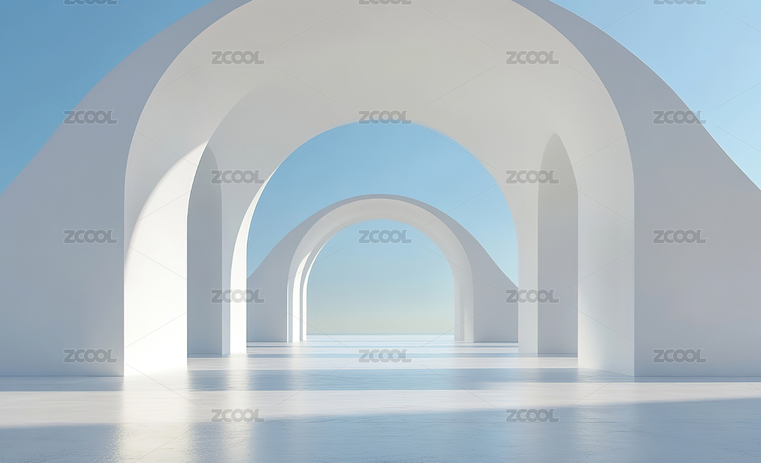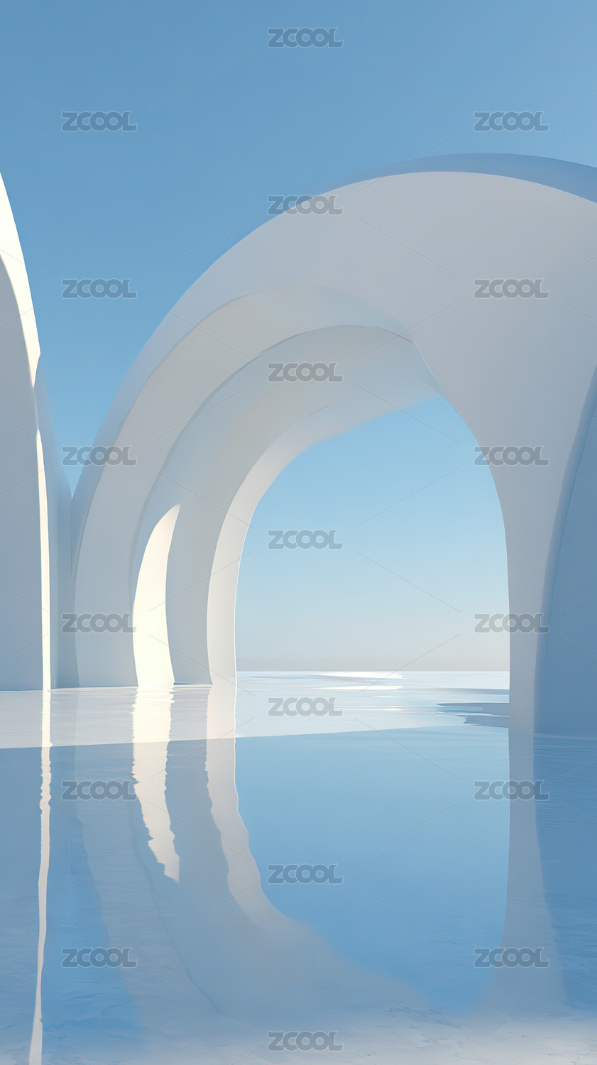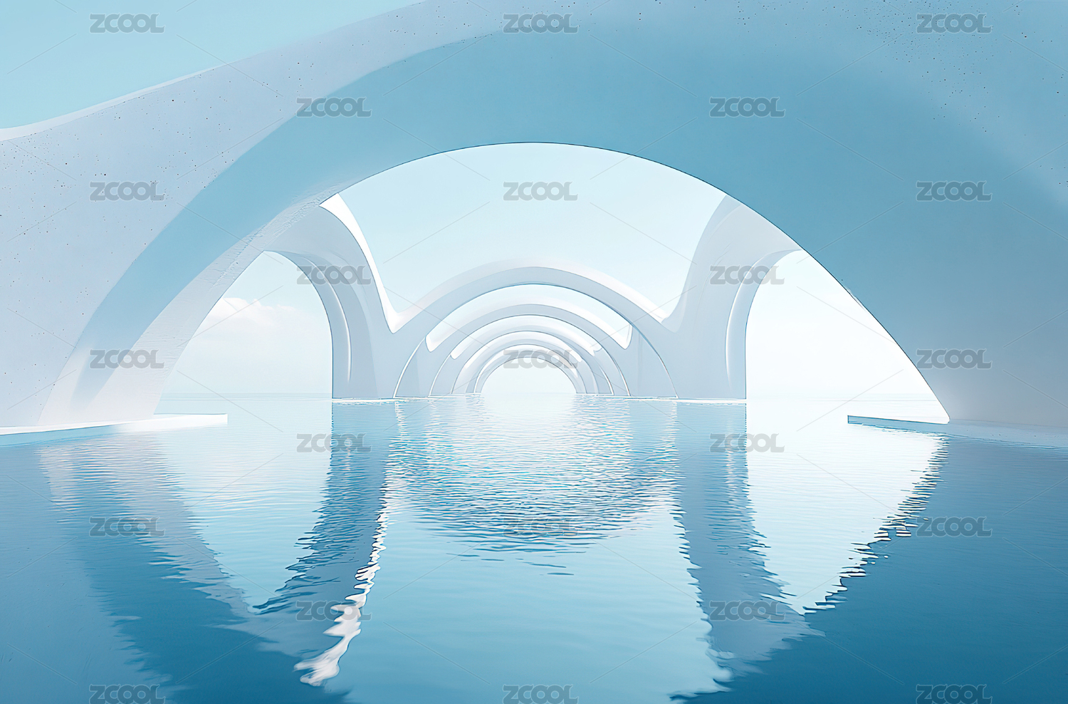建筑,简单,蓝色,晴朗,背景,人造空间,水,几何形状,AI数字艺术