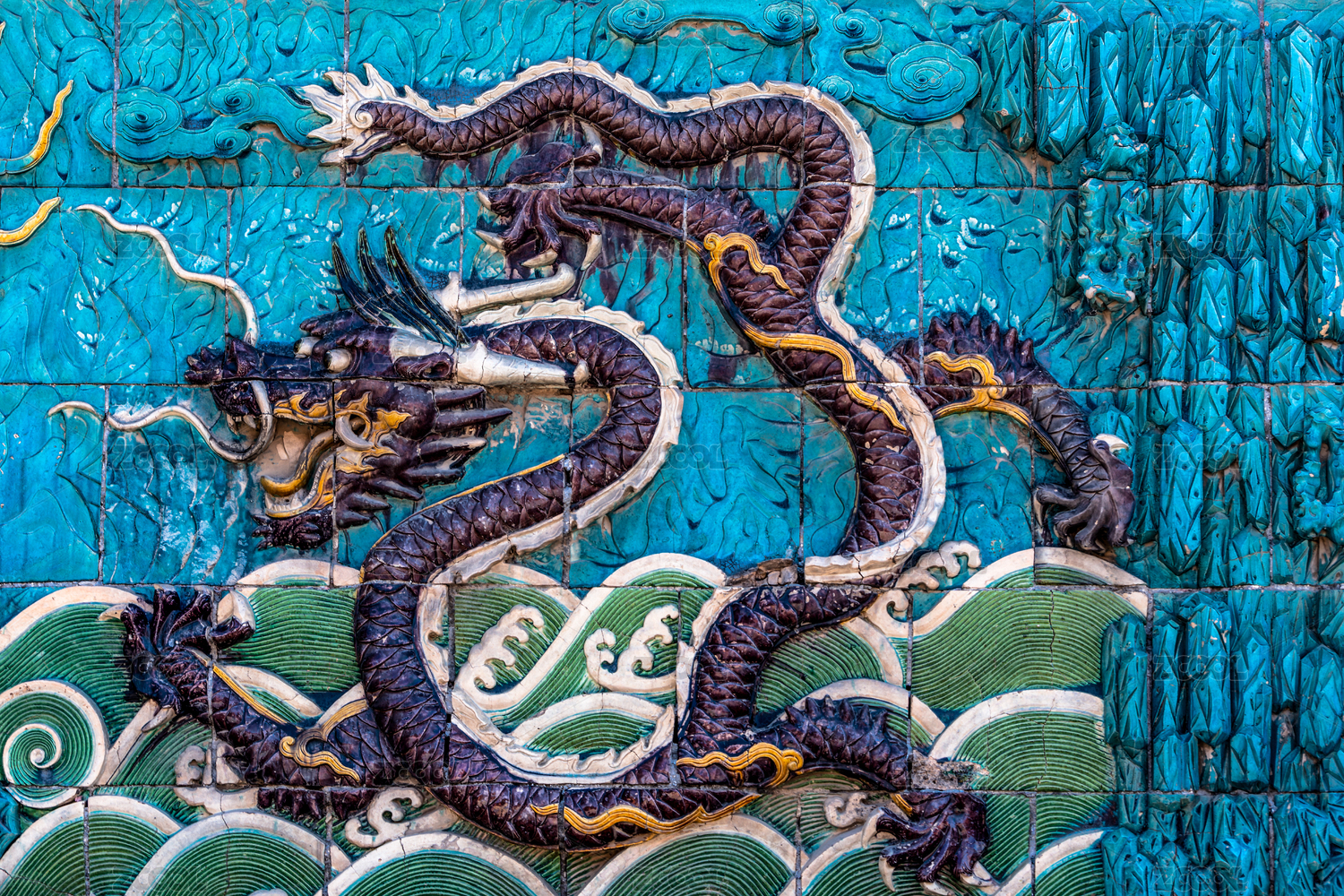 北京故宫博物院九龙壁琉璃瓦壁画局部