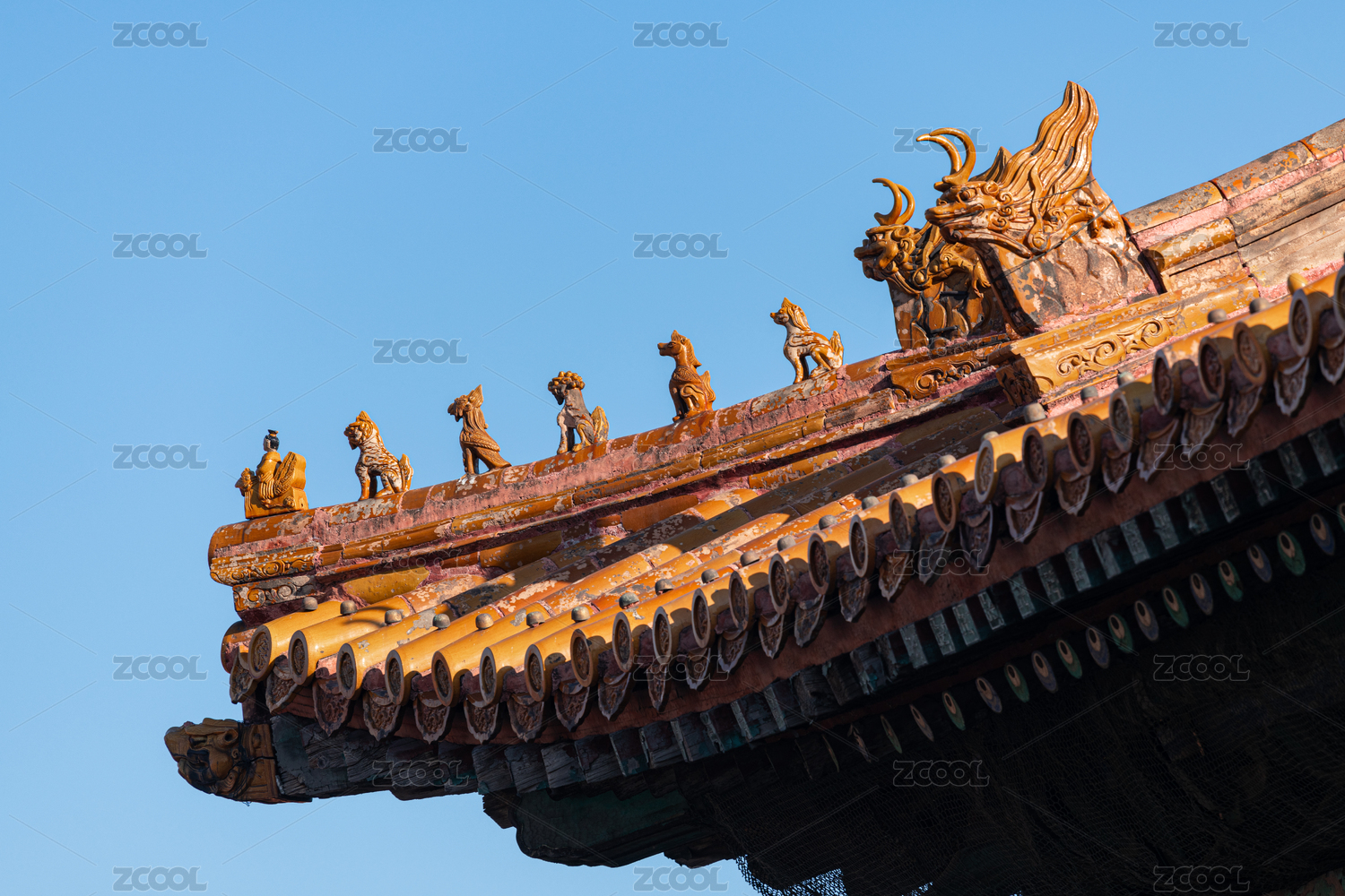 紫禁城故宫红墙黄瓦脊兽鸱吻