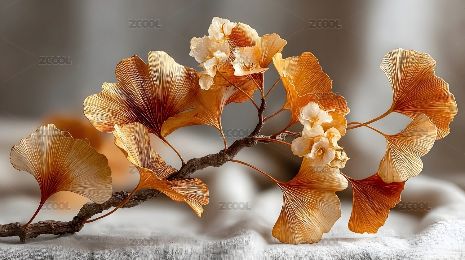 装满苦菇娘的中国风瓷盘放在木制桌面上