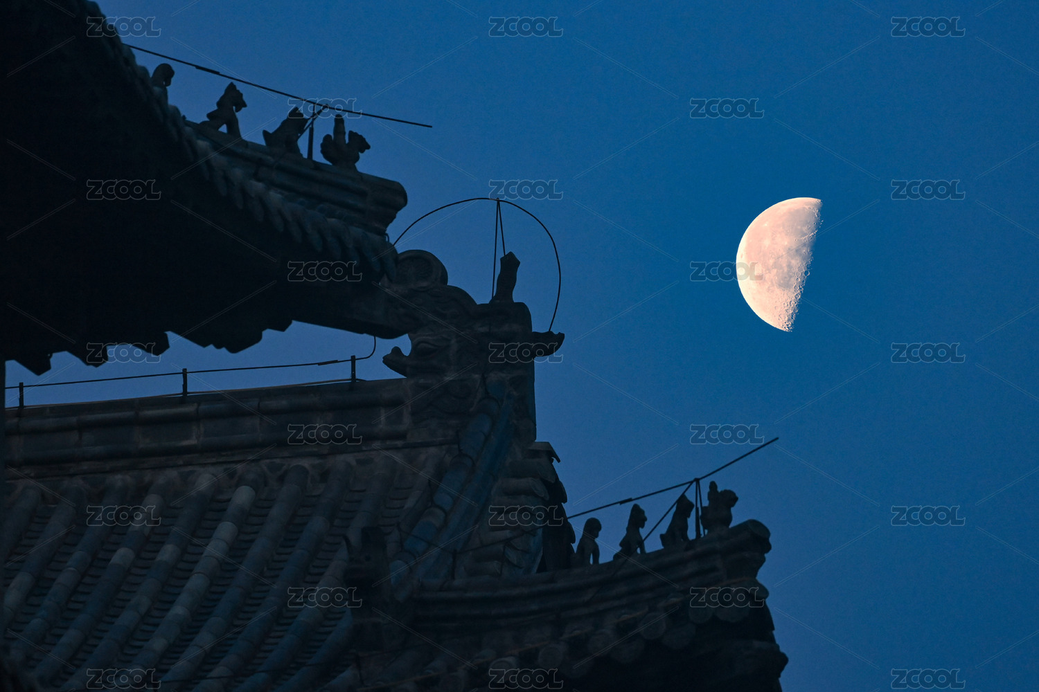 蓝天下的北京中山公园宰牲亭屋顶房檐特写