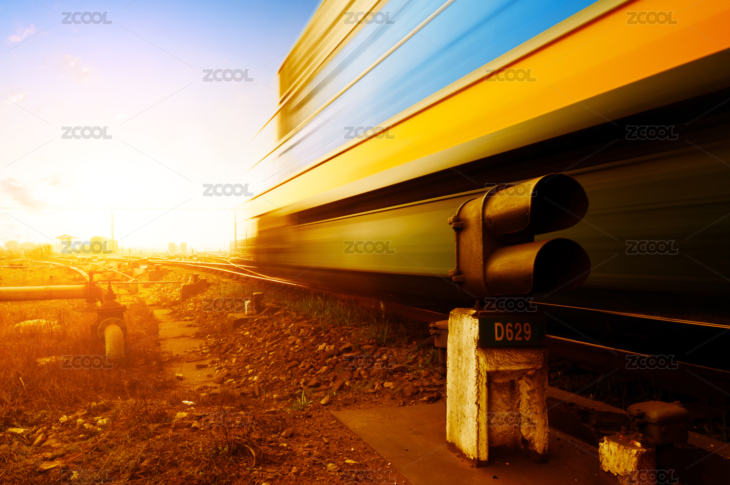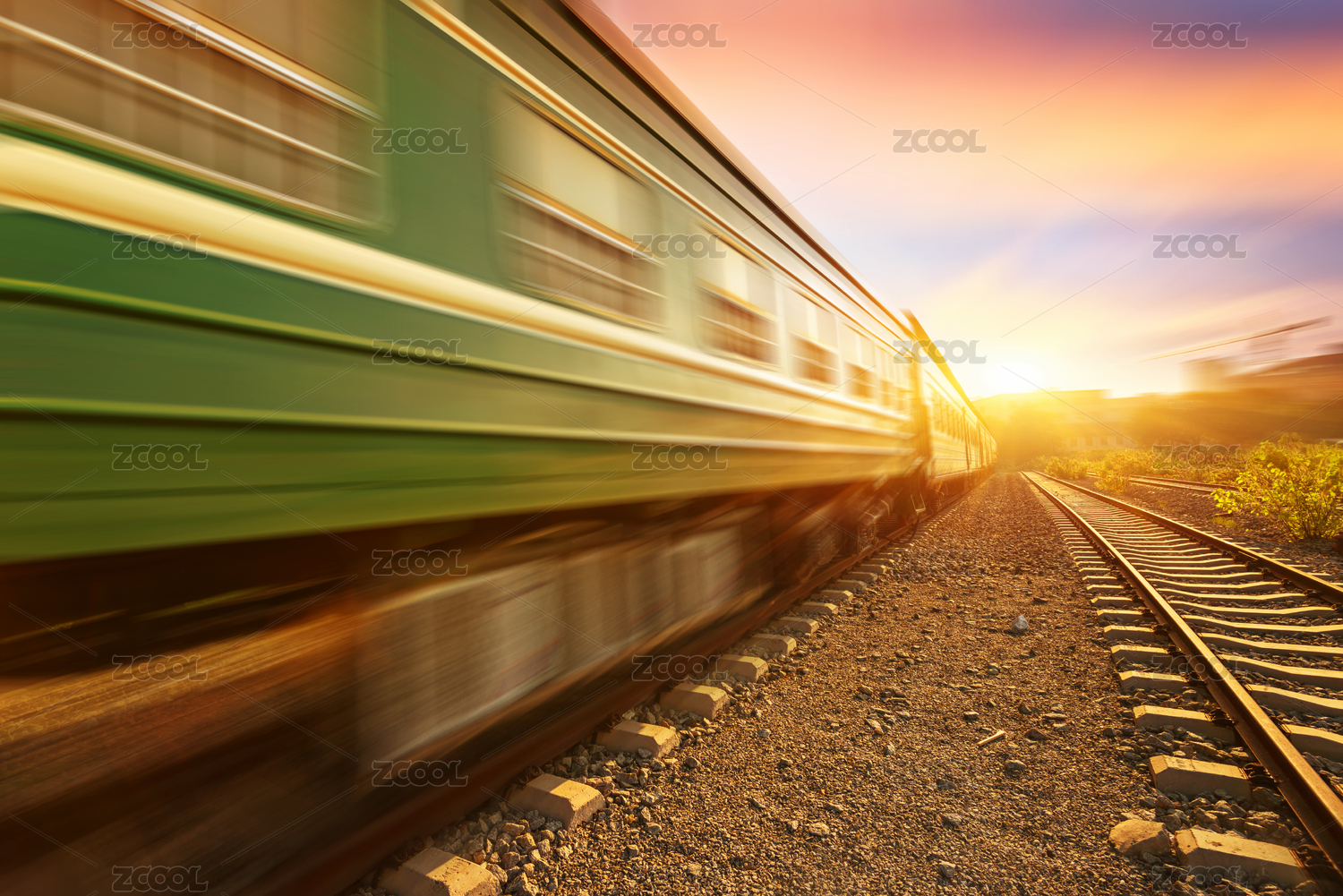日出,火车货运站,铁轨上快速行驶的火车,贸易往来