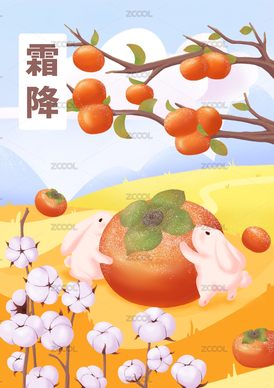 卡通手绘24节气霜降秋末素材海报设计包装插画
