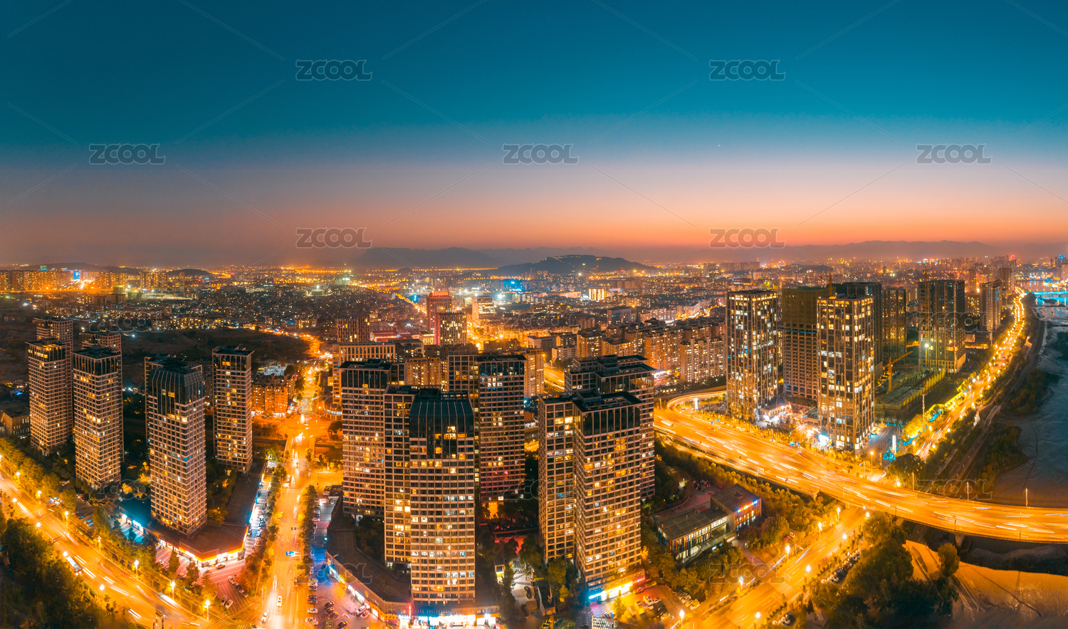 中国广东省惠州市俯角城市夜景