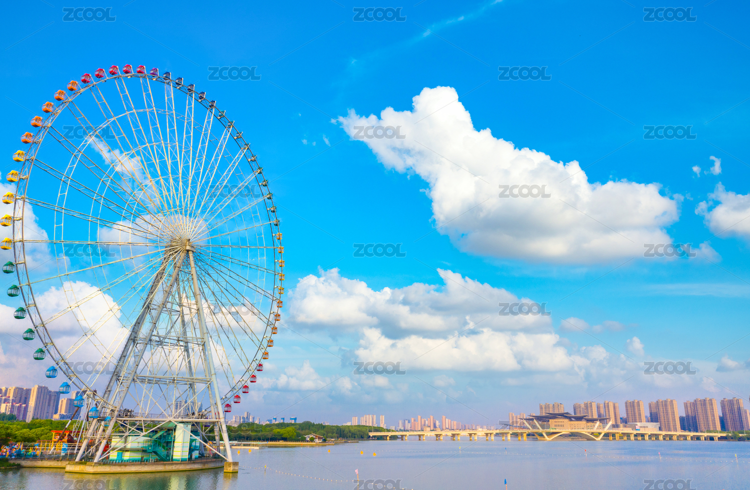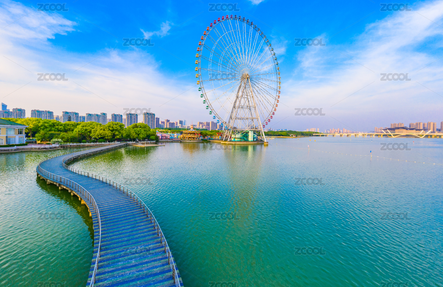 蠡湖,无锡,风景区,摩天轮,蠡湖大桥,桥梁,圆形,现代,城市,天空