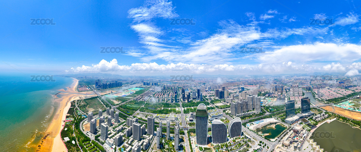 航拍中国山东日照城市建筑景观天际线