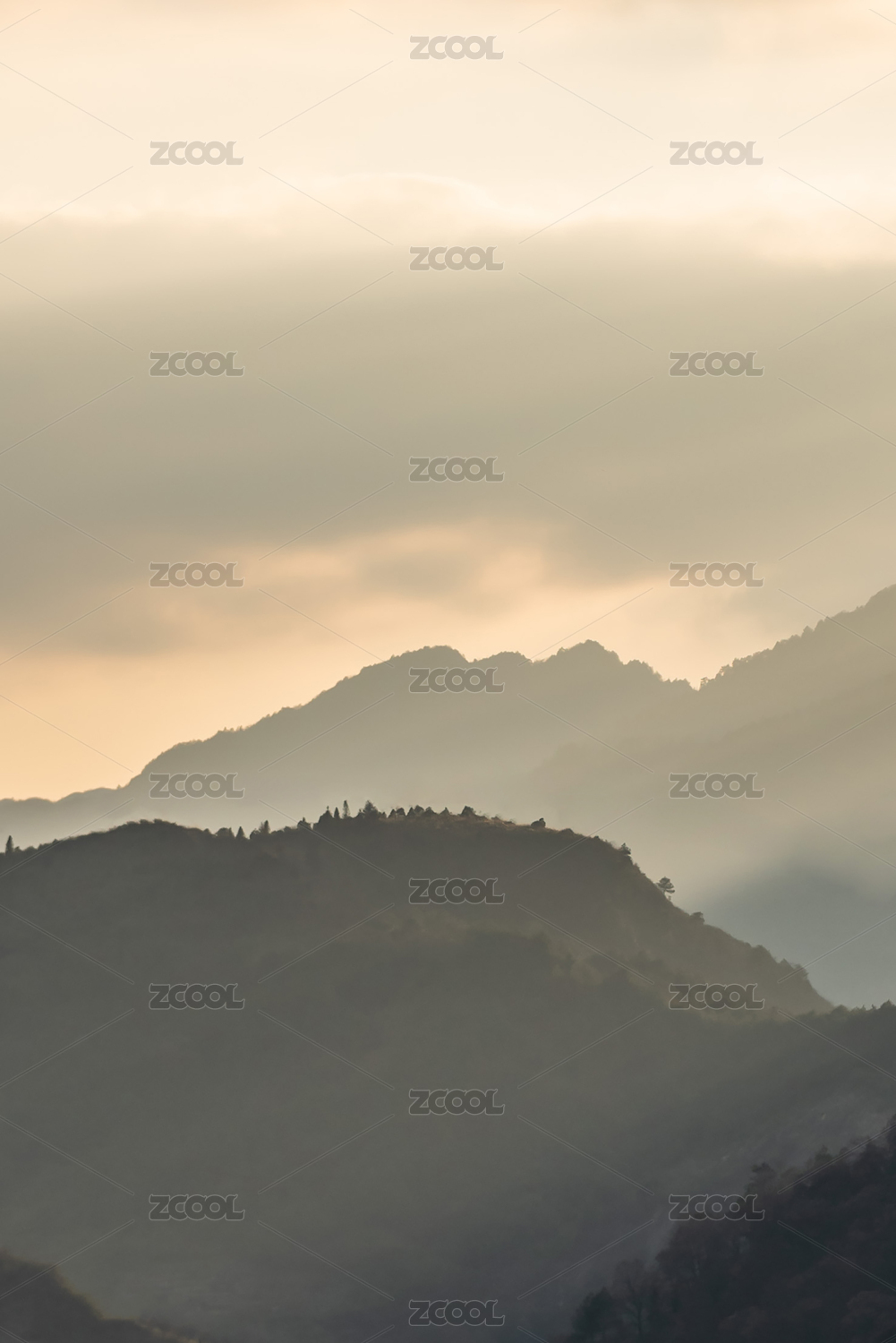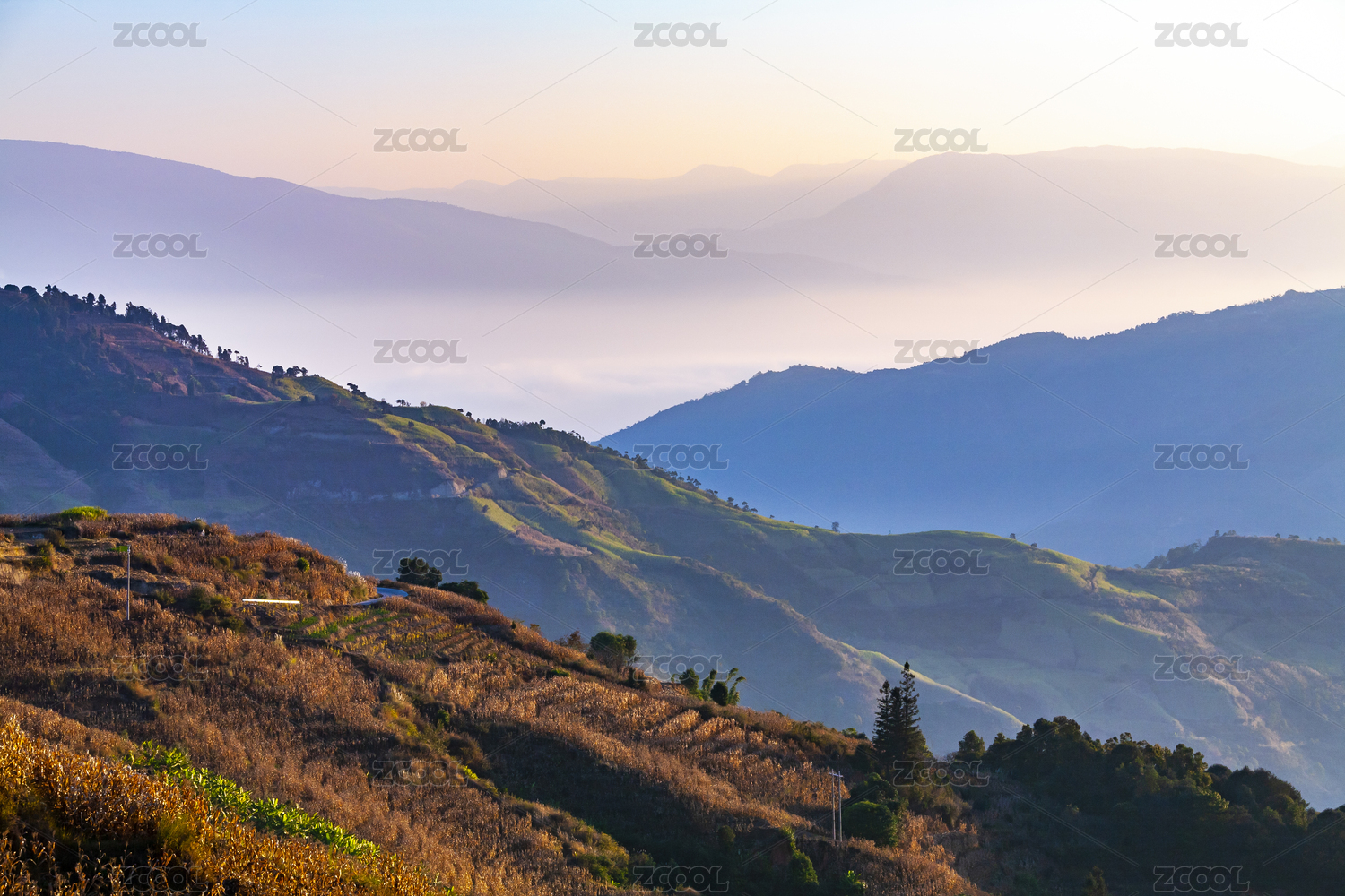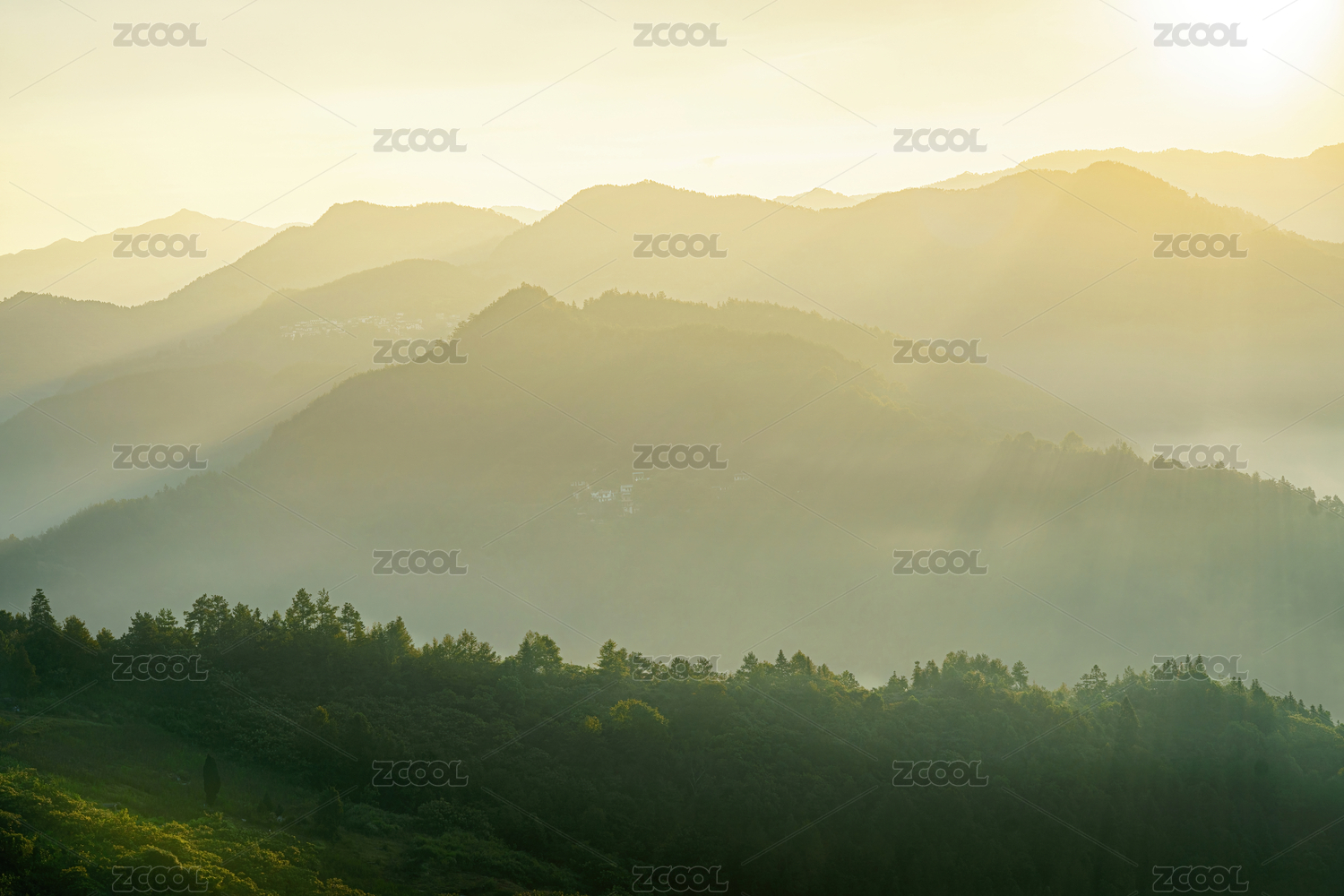 朝阳下的群山起伏
