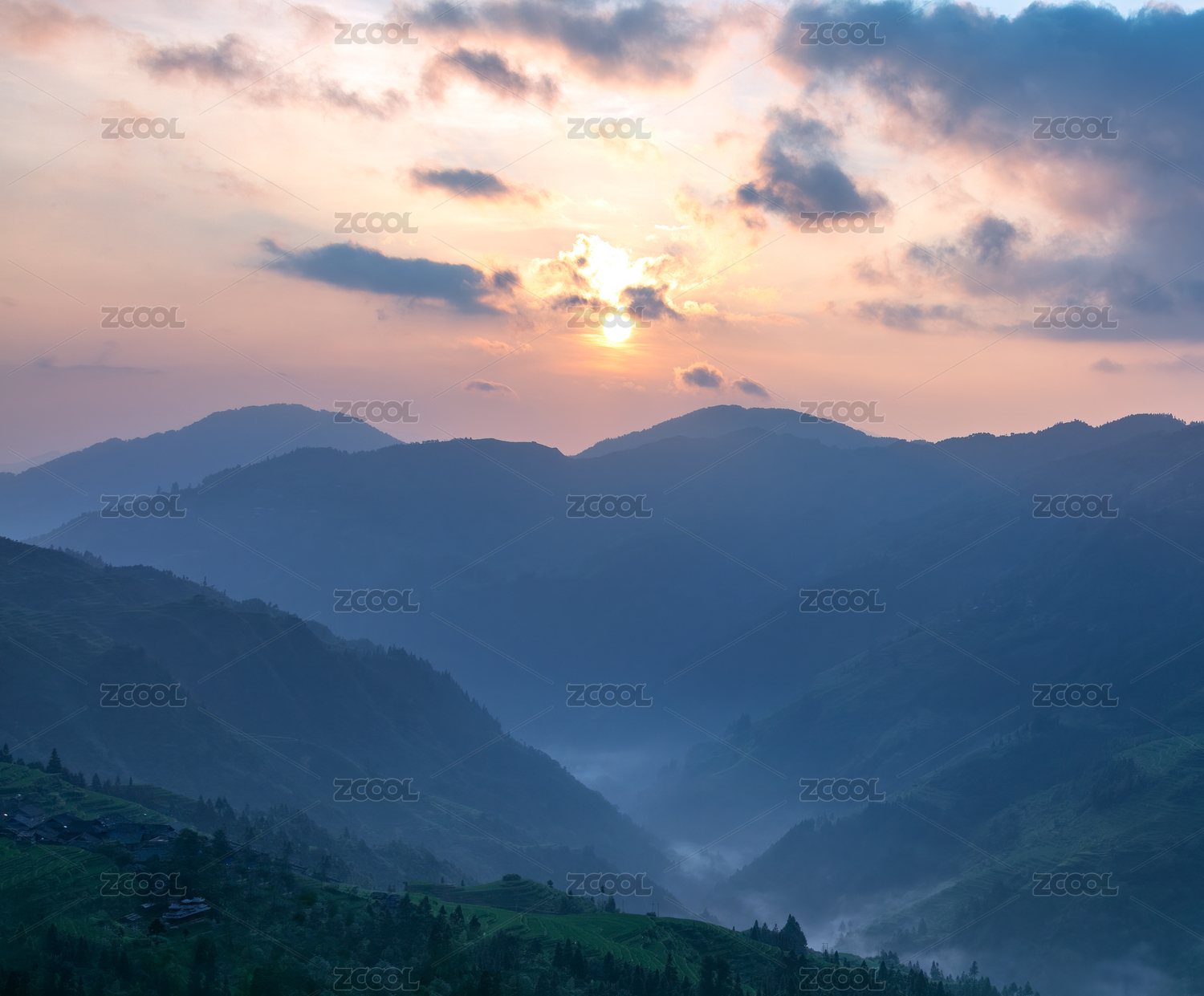 中国贵州黔东南加榜梯田的日出