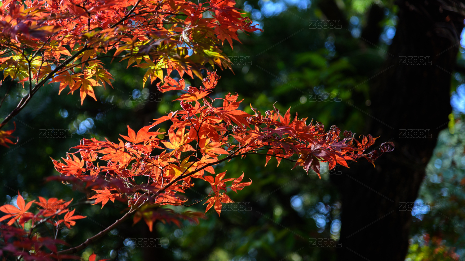 深秋阳光下的枫叶