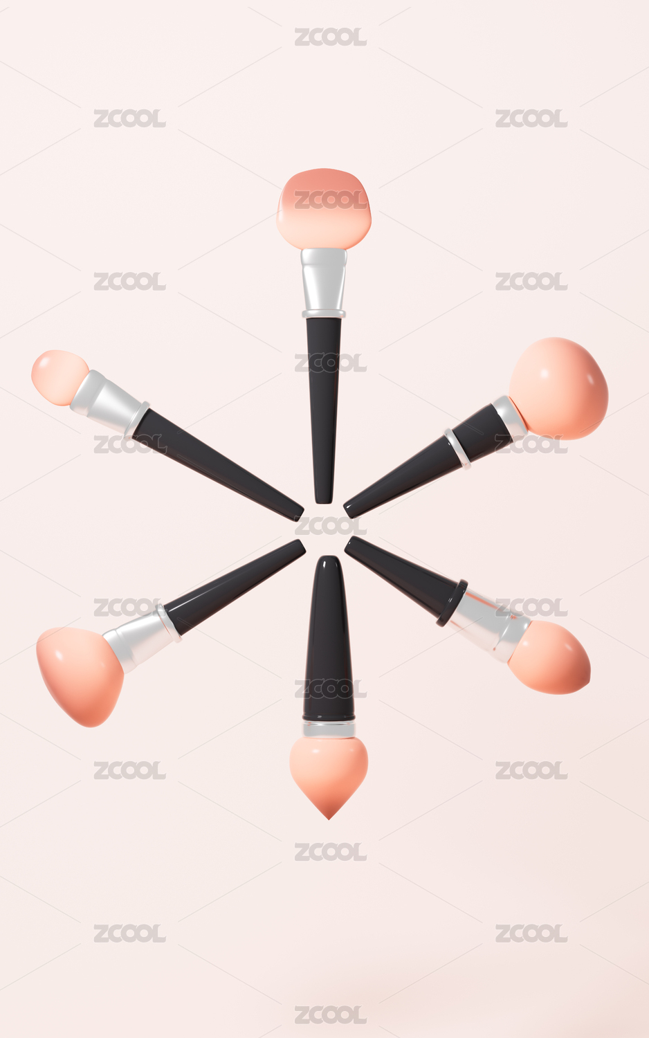 彩色时尚卡通可爱装饰美妆化妆刷图标插图