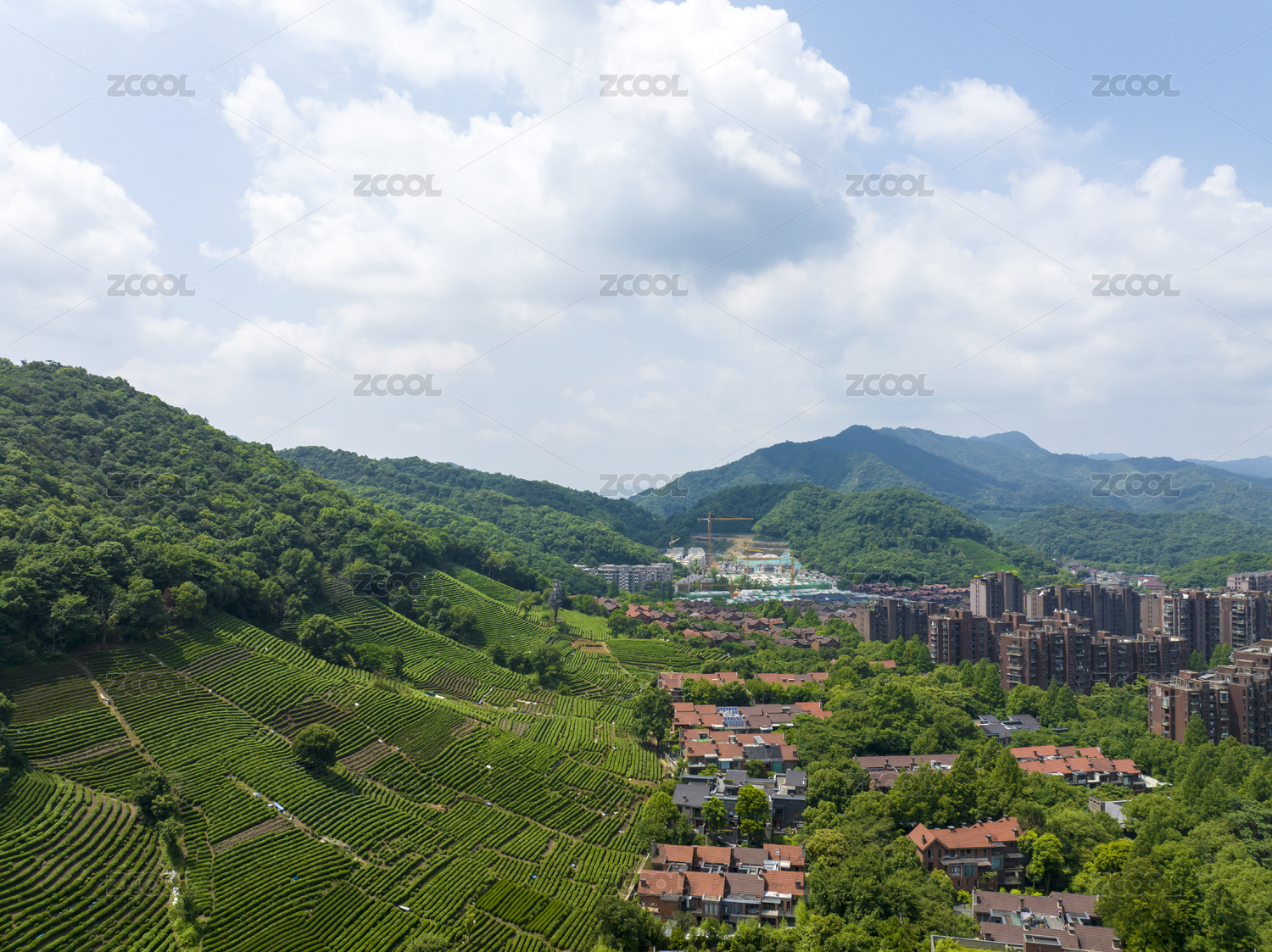 杭州西湖龙井茶园航拍