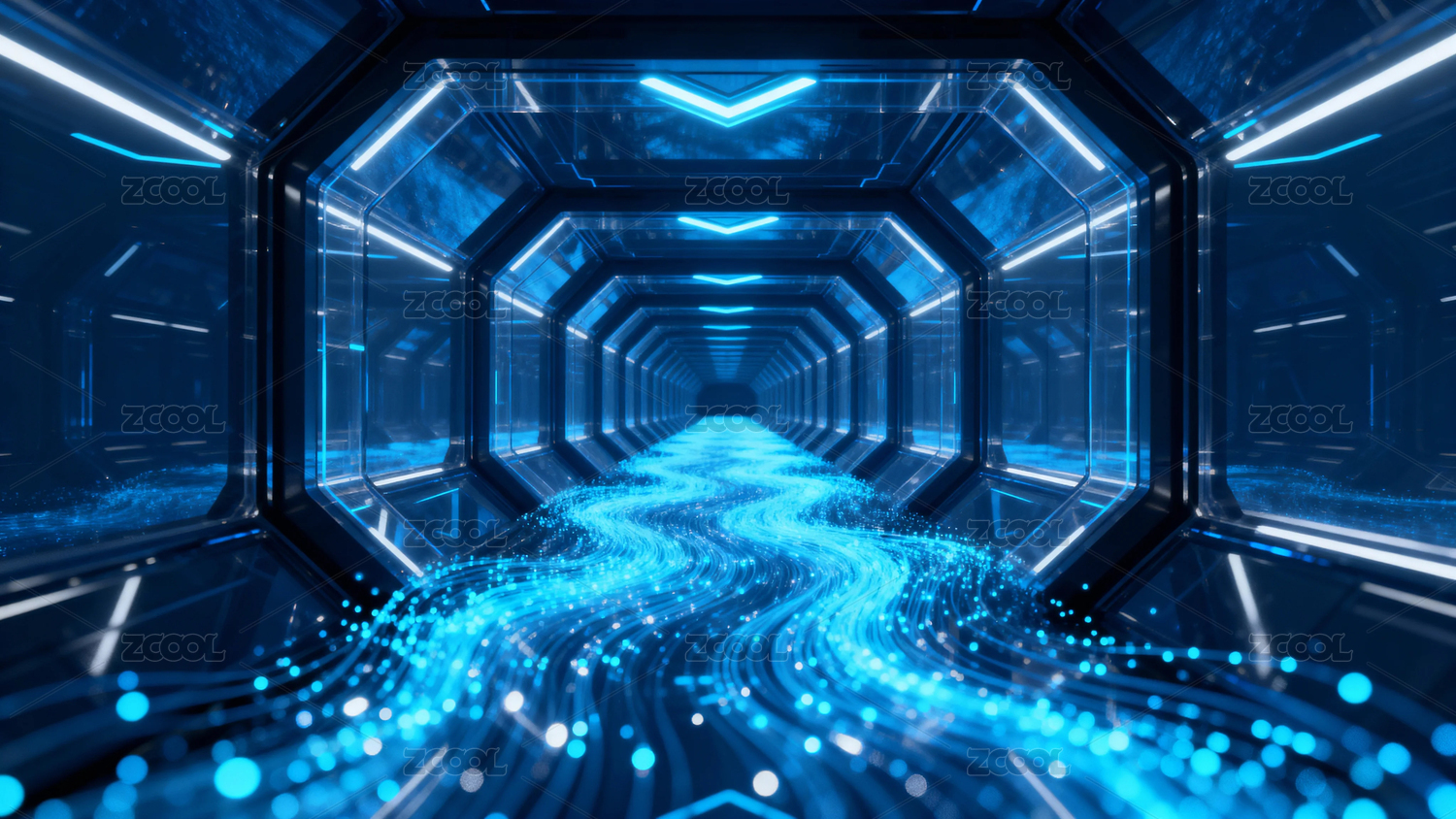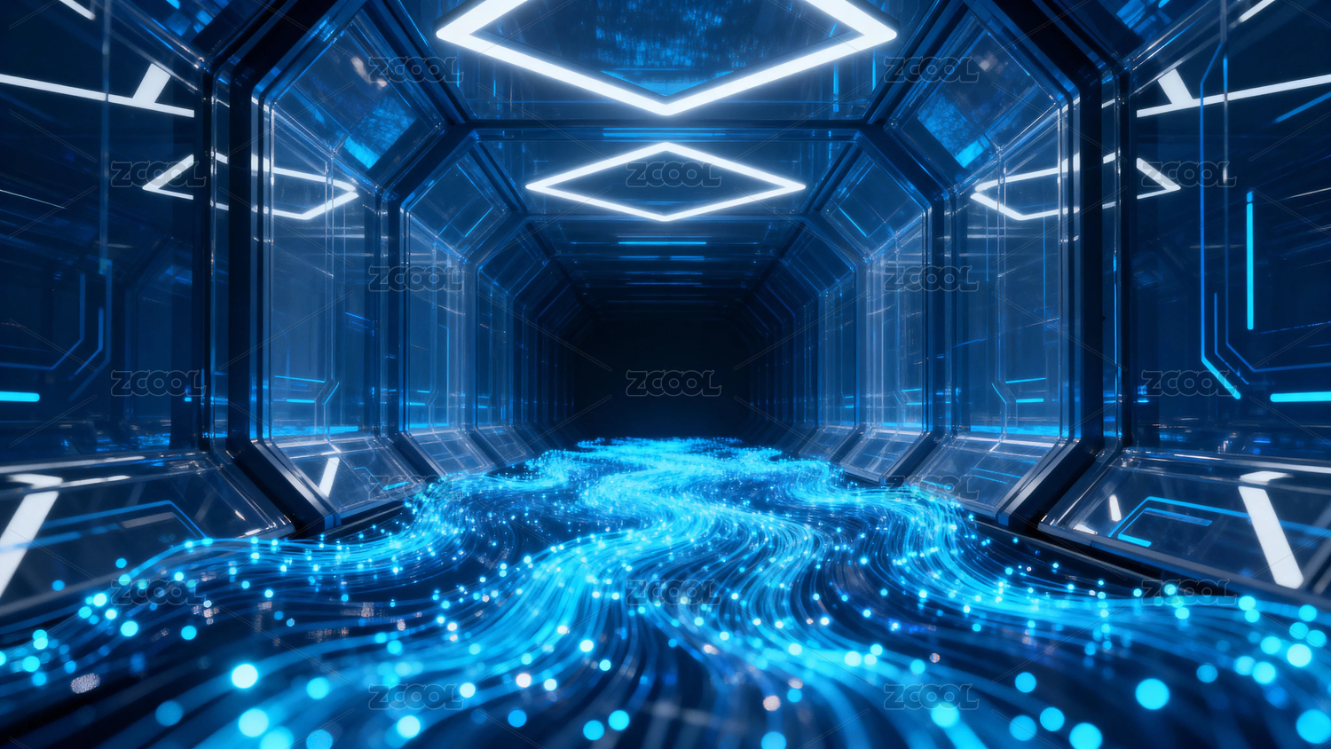 水晶,玻璃,蓝色,通道,穿梭,现代,未来,空间,抽象,照亮