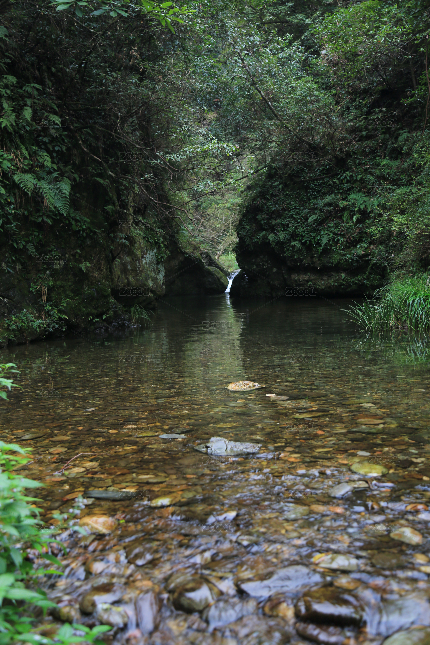 慢门拍摄的重庆五A级风景区黑山谷的溪流