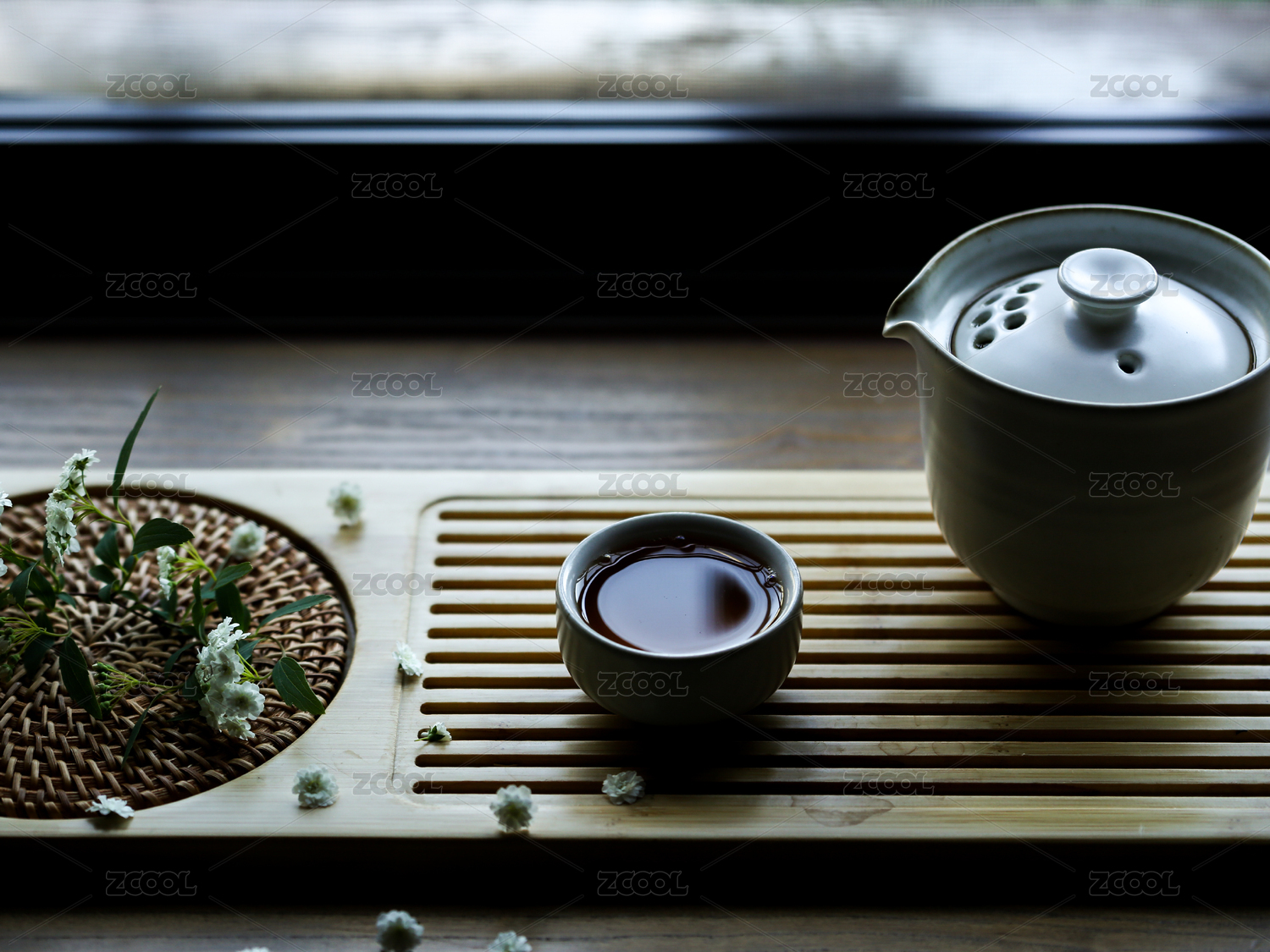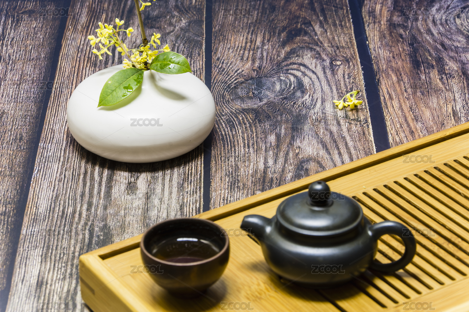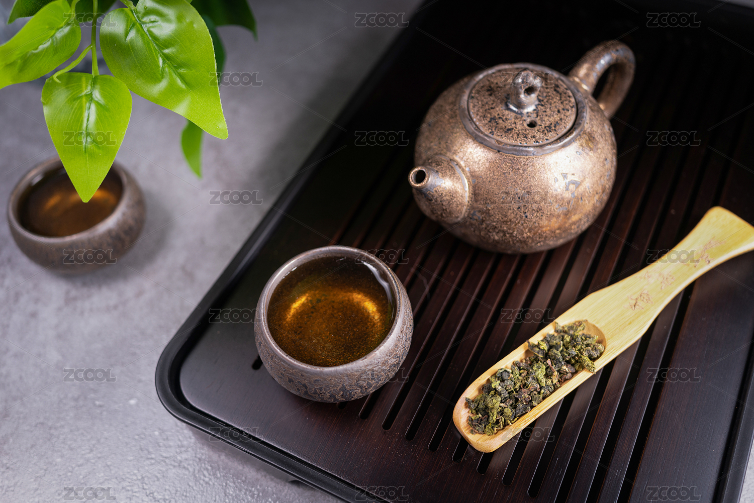 茶艺,茶壶,茶杯,茶叶,茶具,摆设,静物,微距,组合,树叶