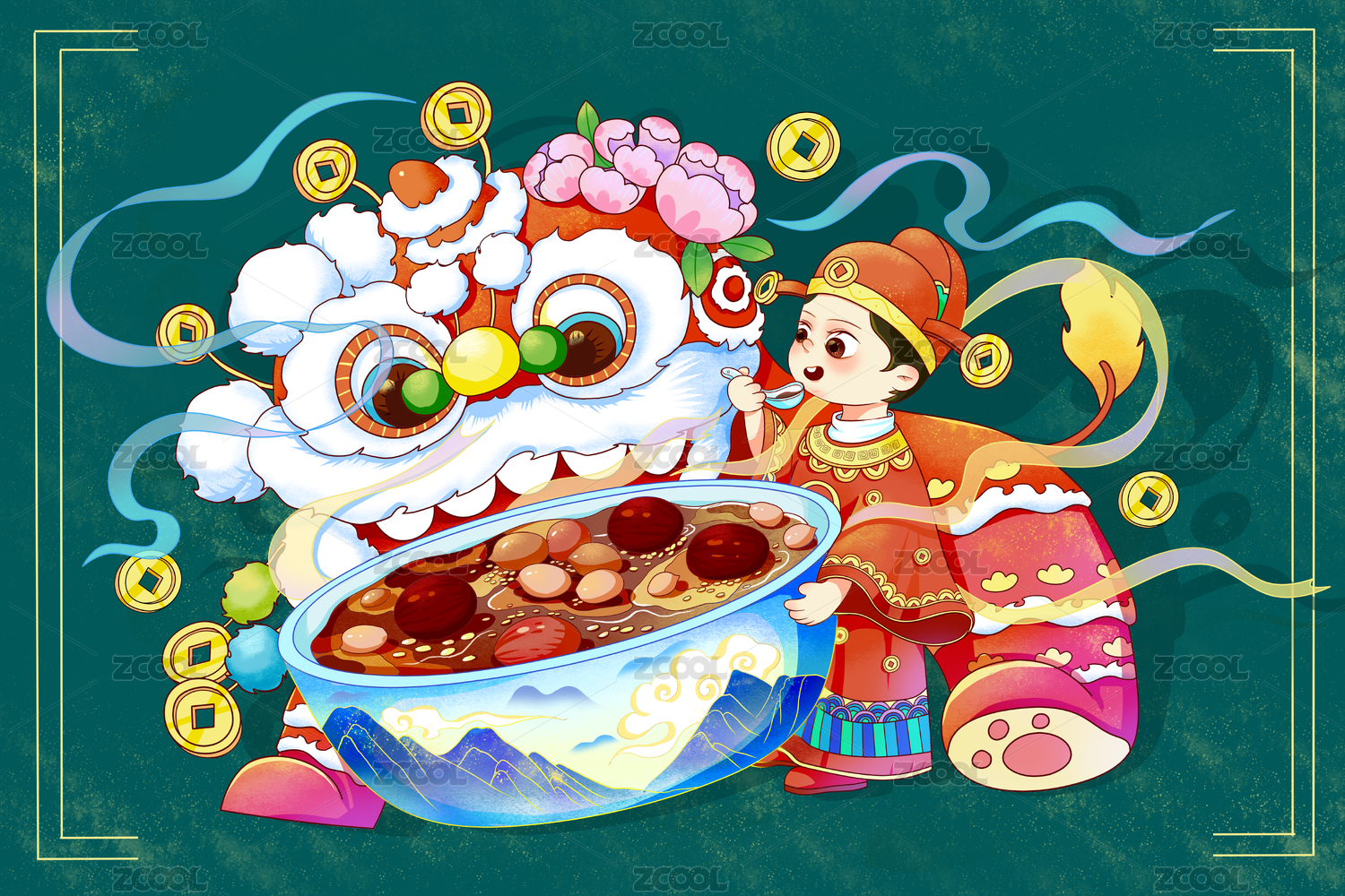 龙城濮阳的城市建筑与美食缩影,中国风插画