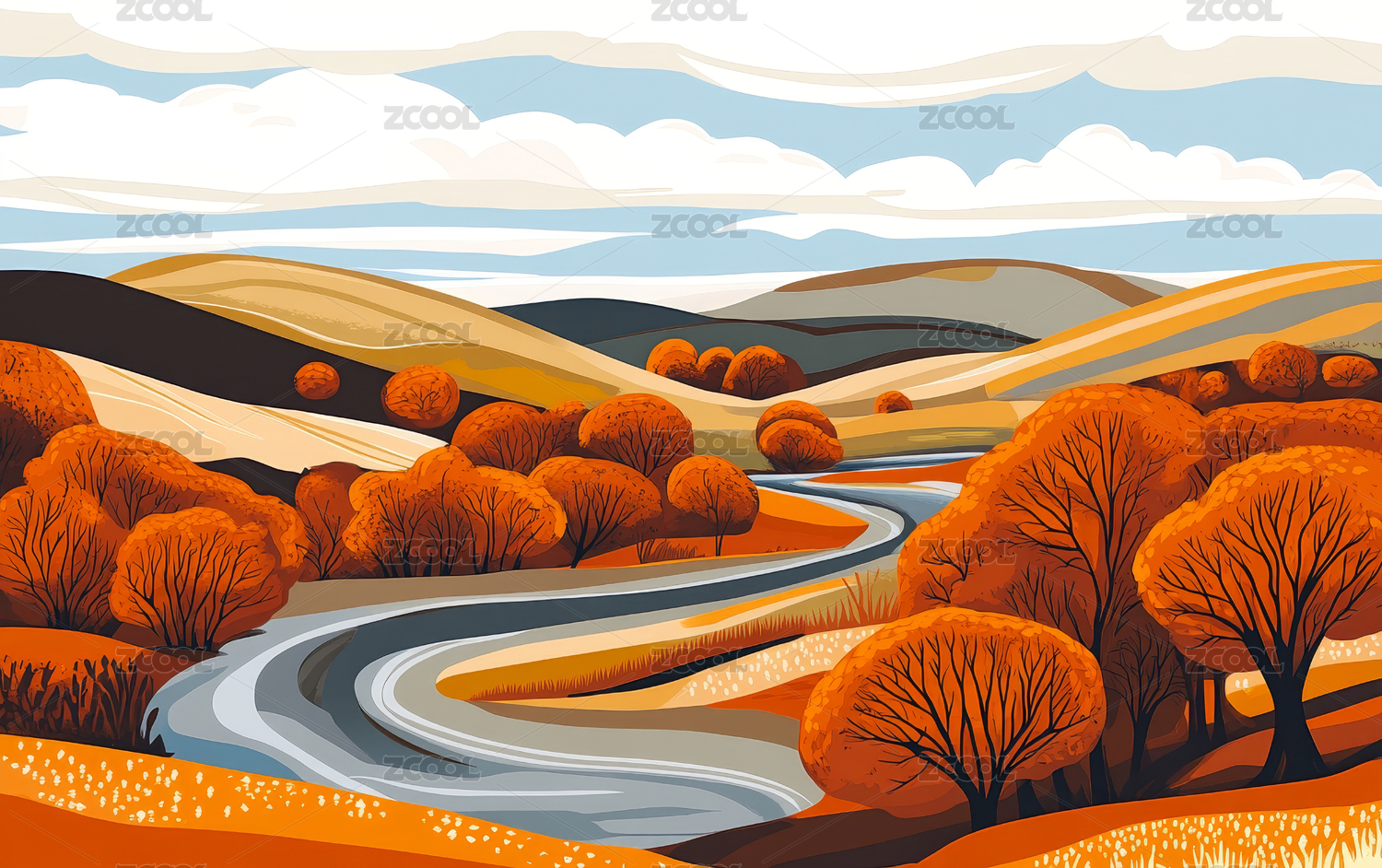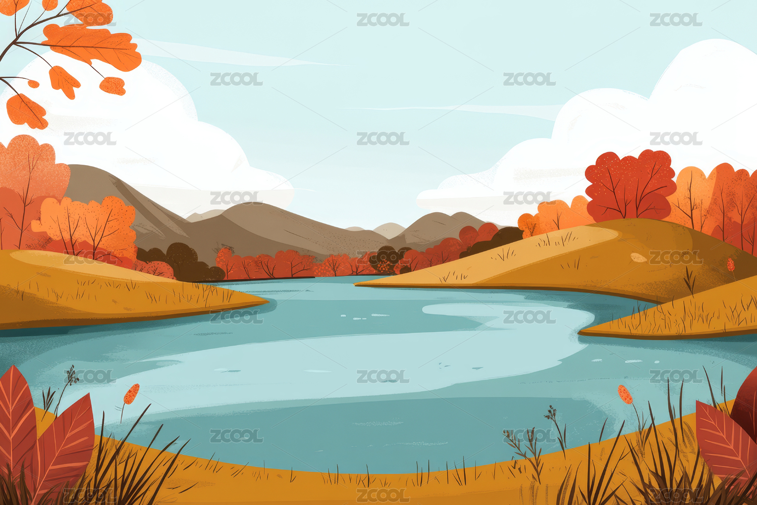 秋天,秋分,插画,立秋,自然,高山,宁静,自然美,风景,叶子