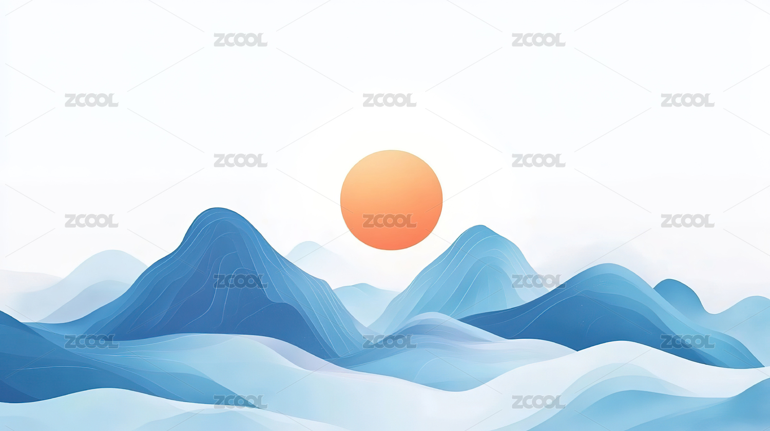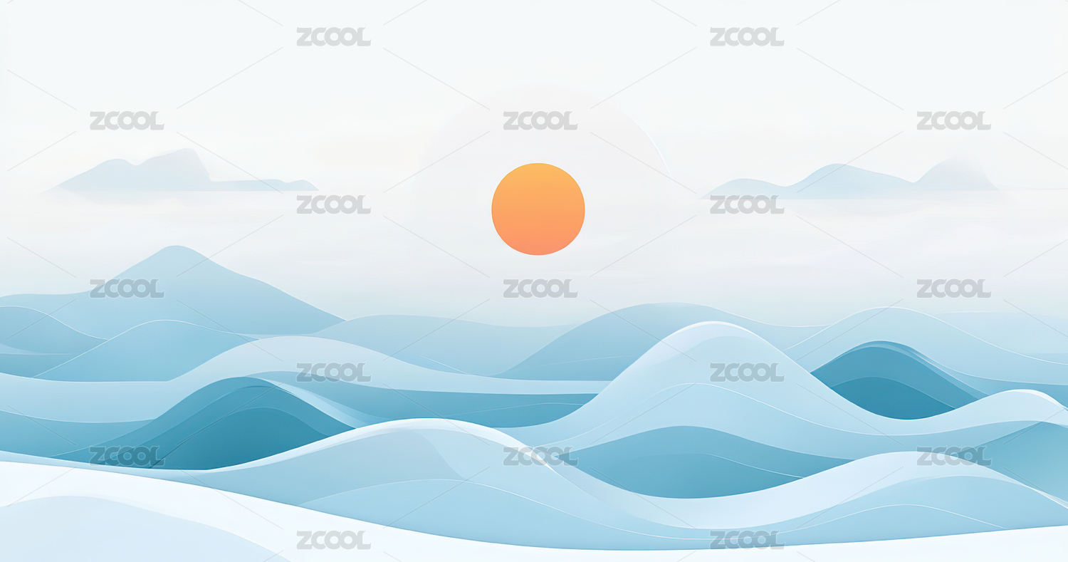 蓝色渐变水墨山水画新中式水墨画