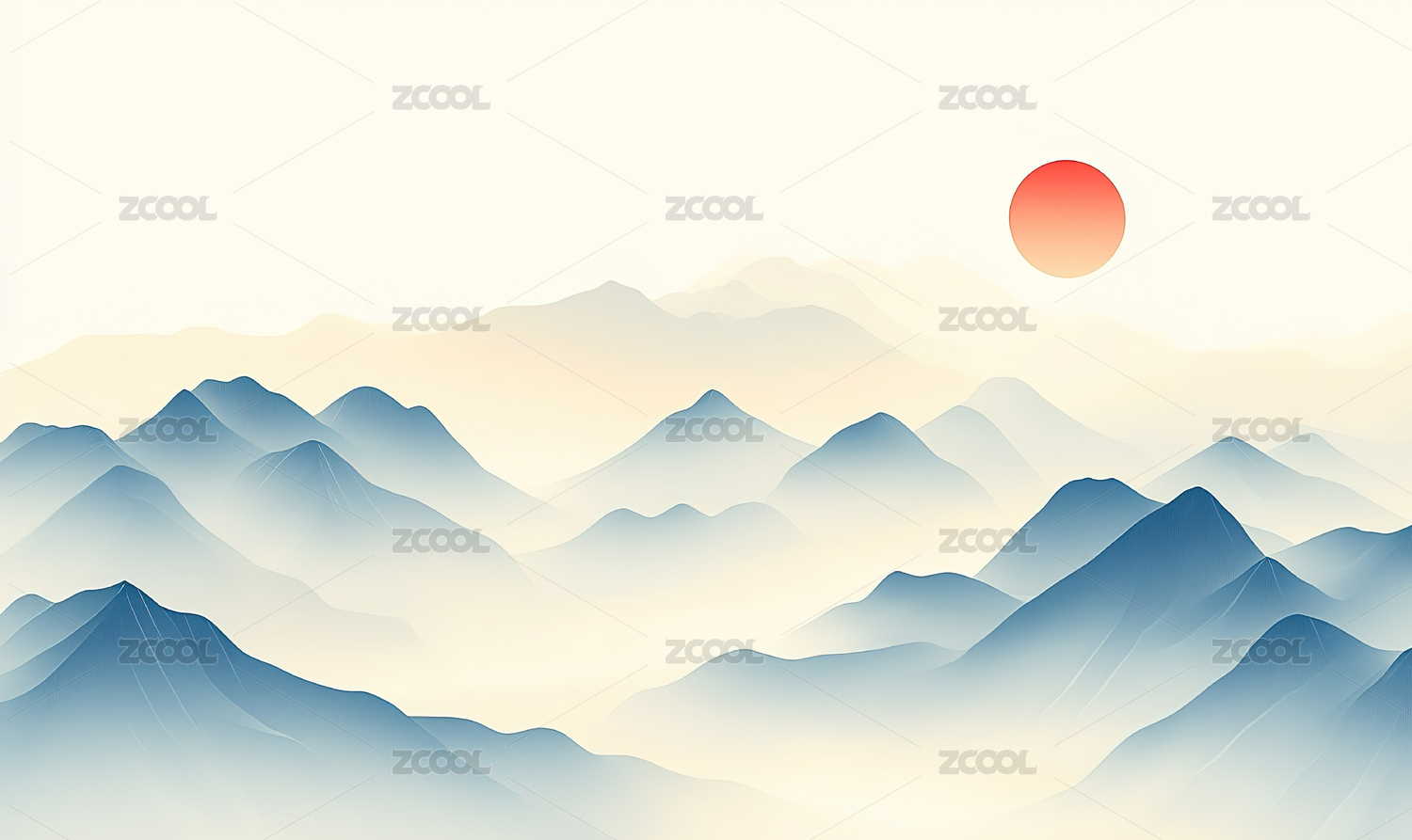 矢量绘制水墨风格创意山水画