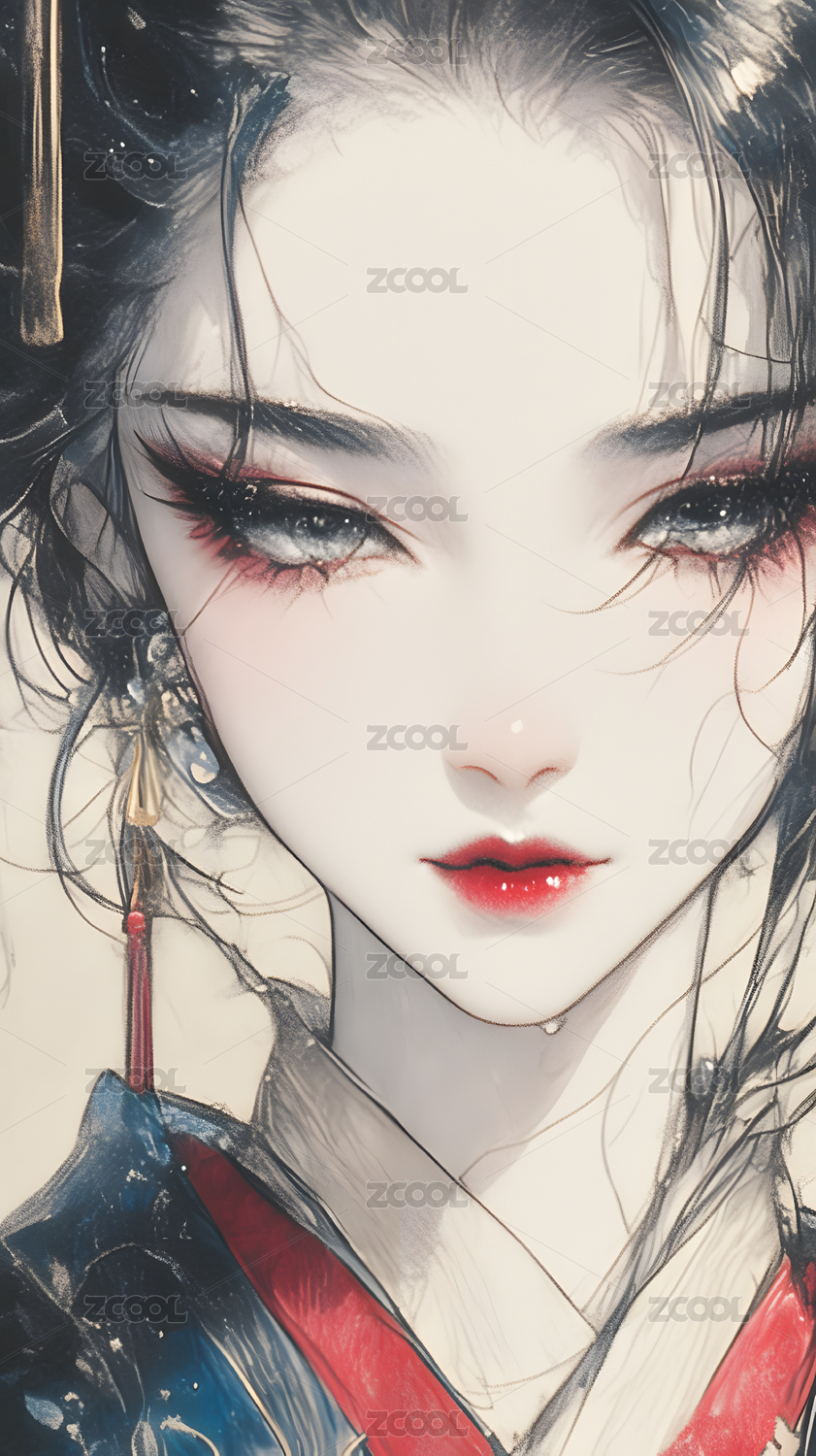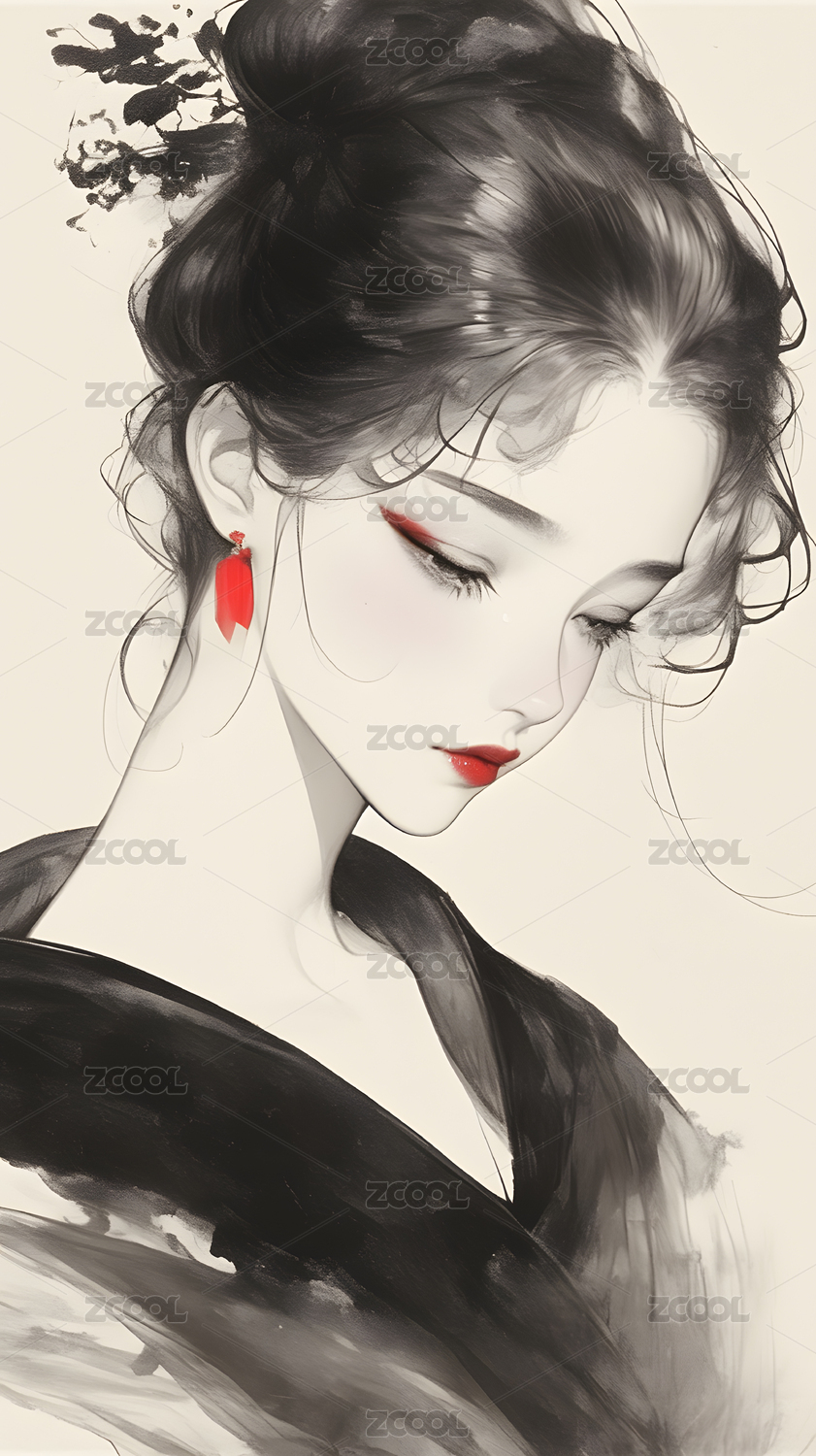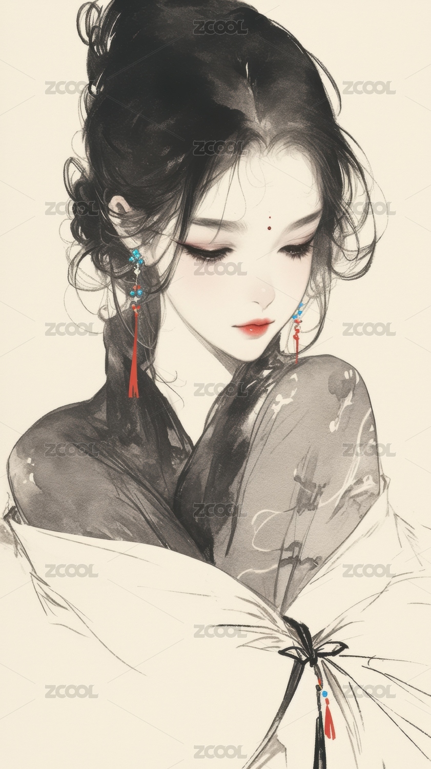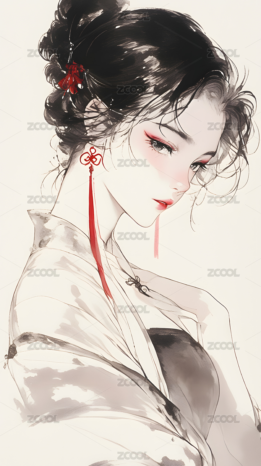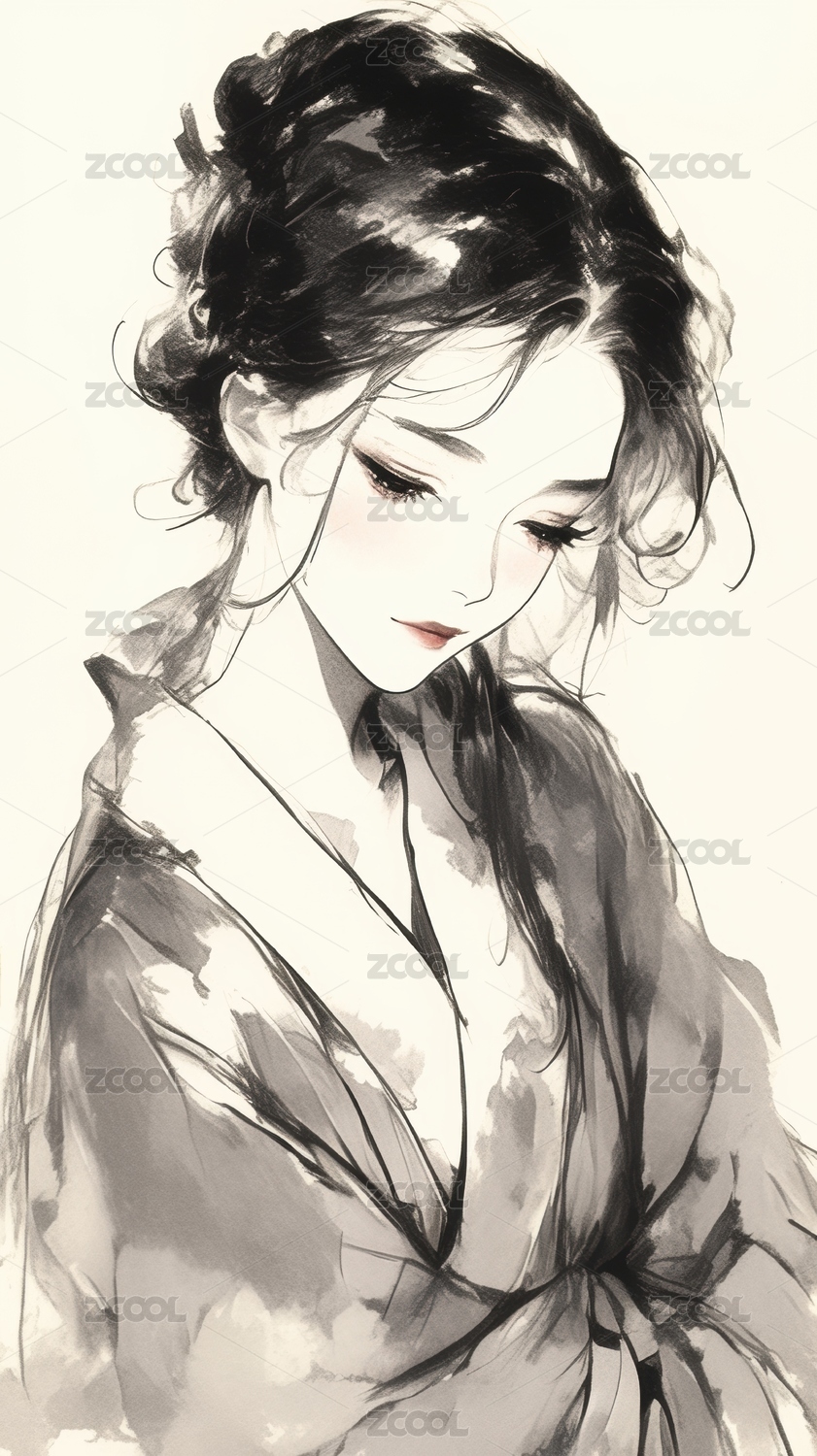 水墨风格的女性肖像画