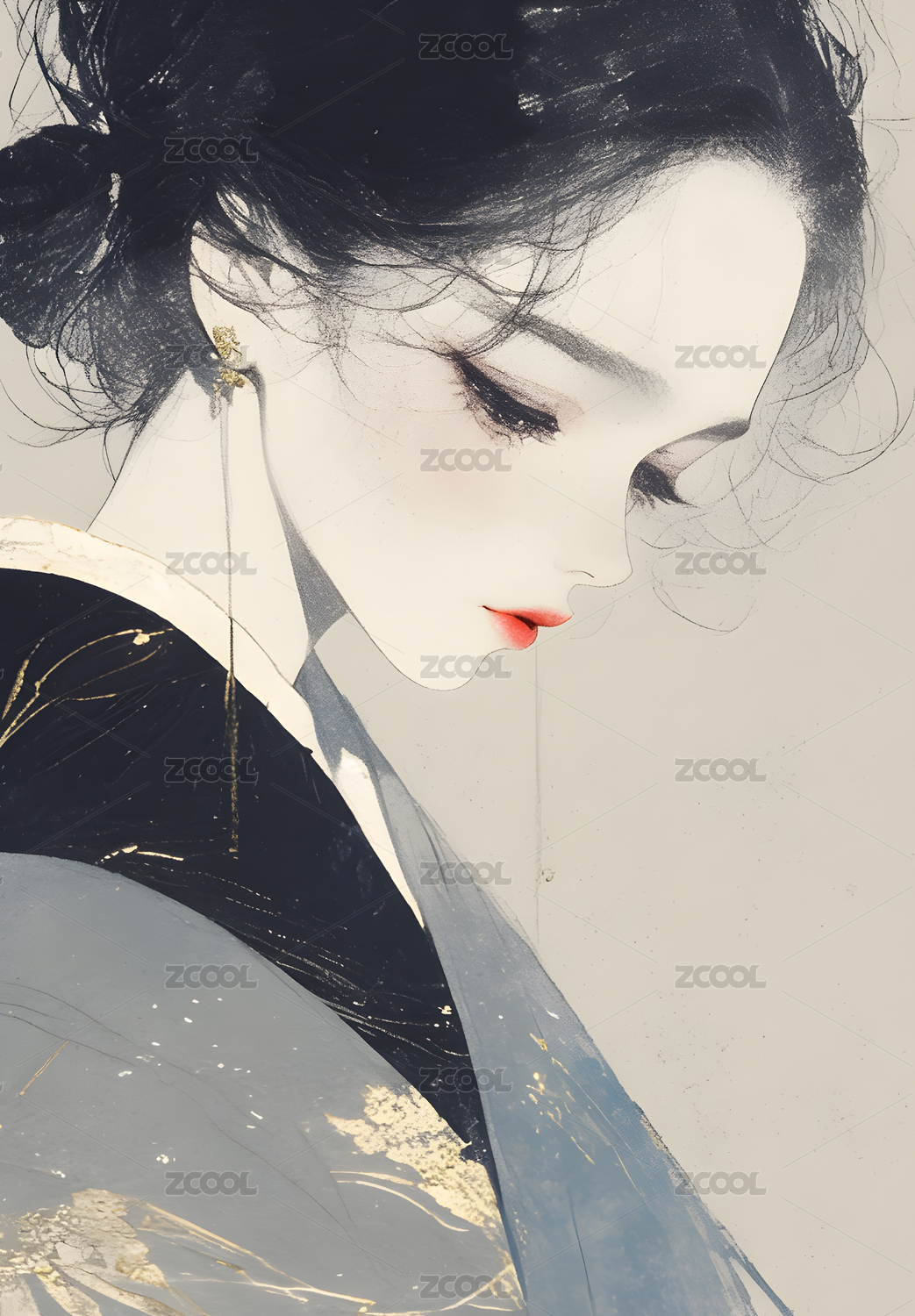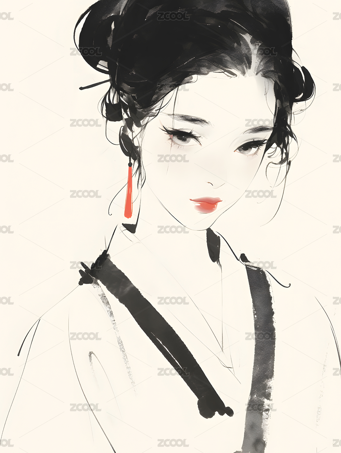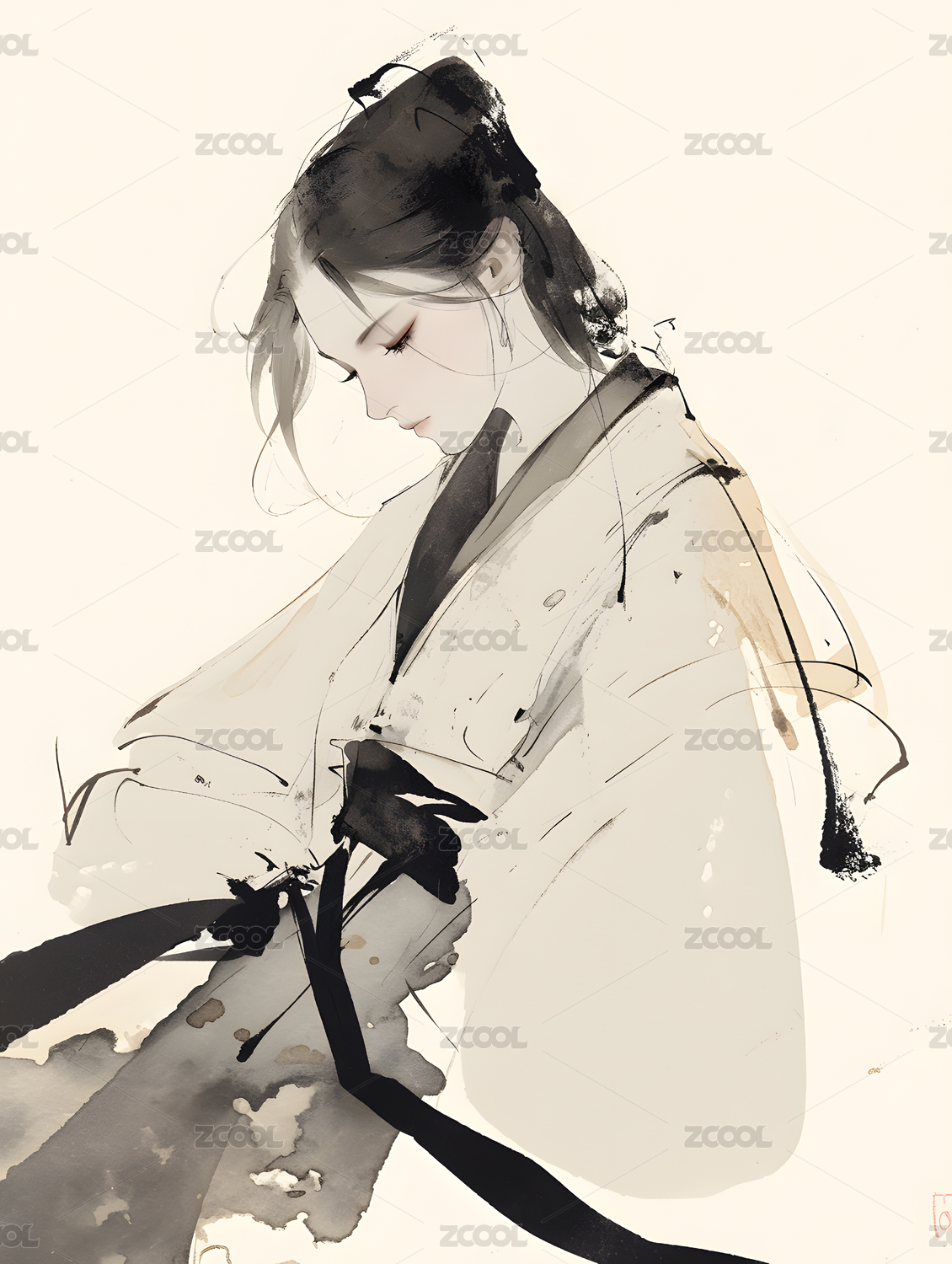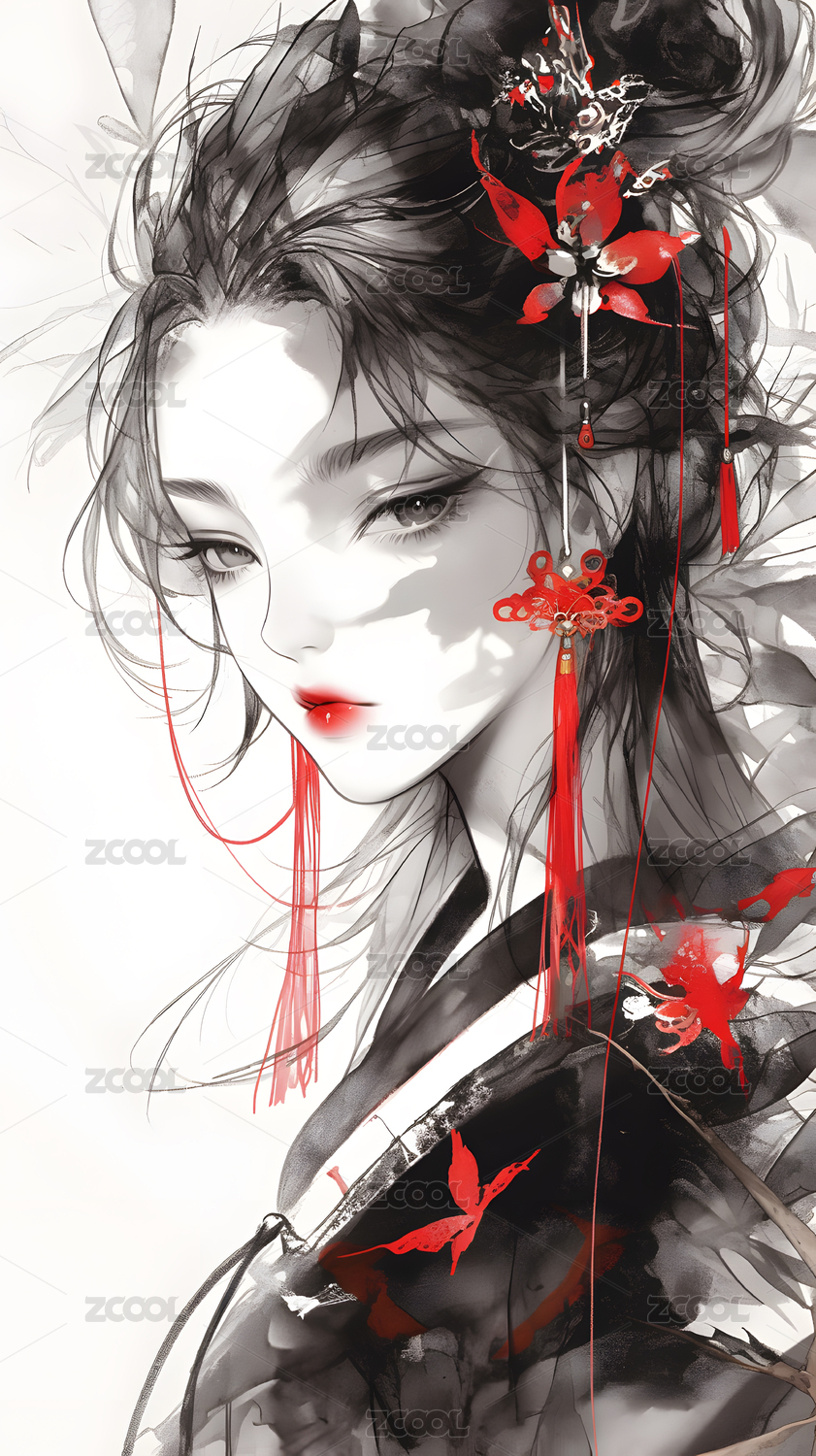 水墨风格的女性肖像画