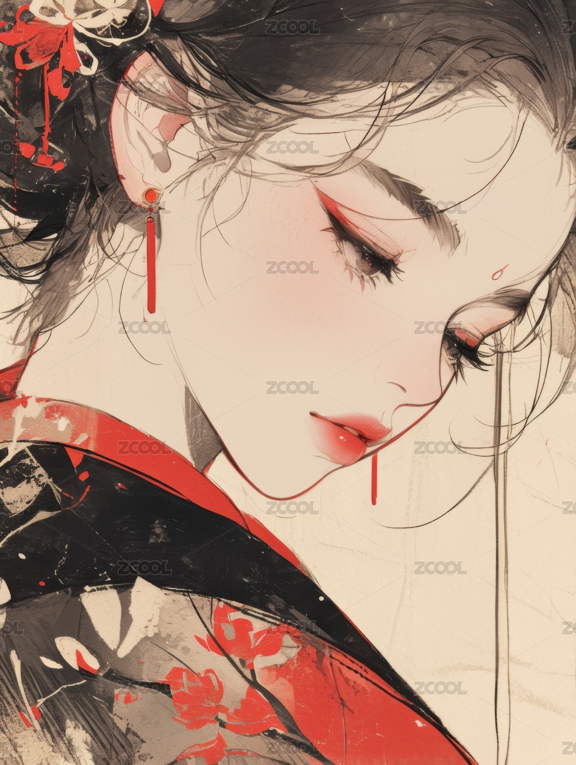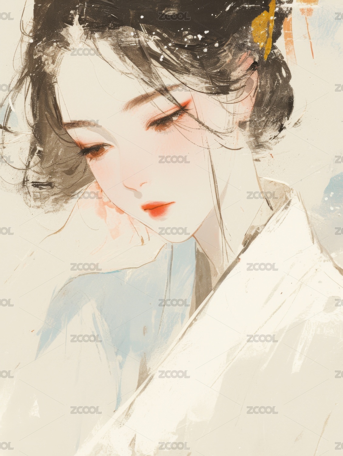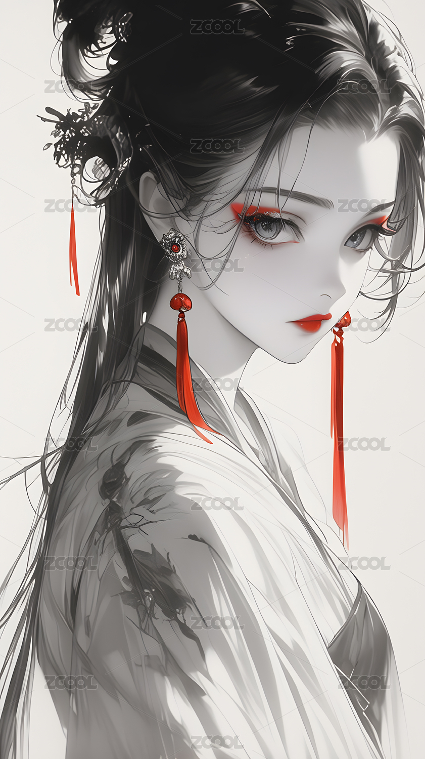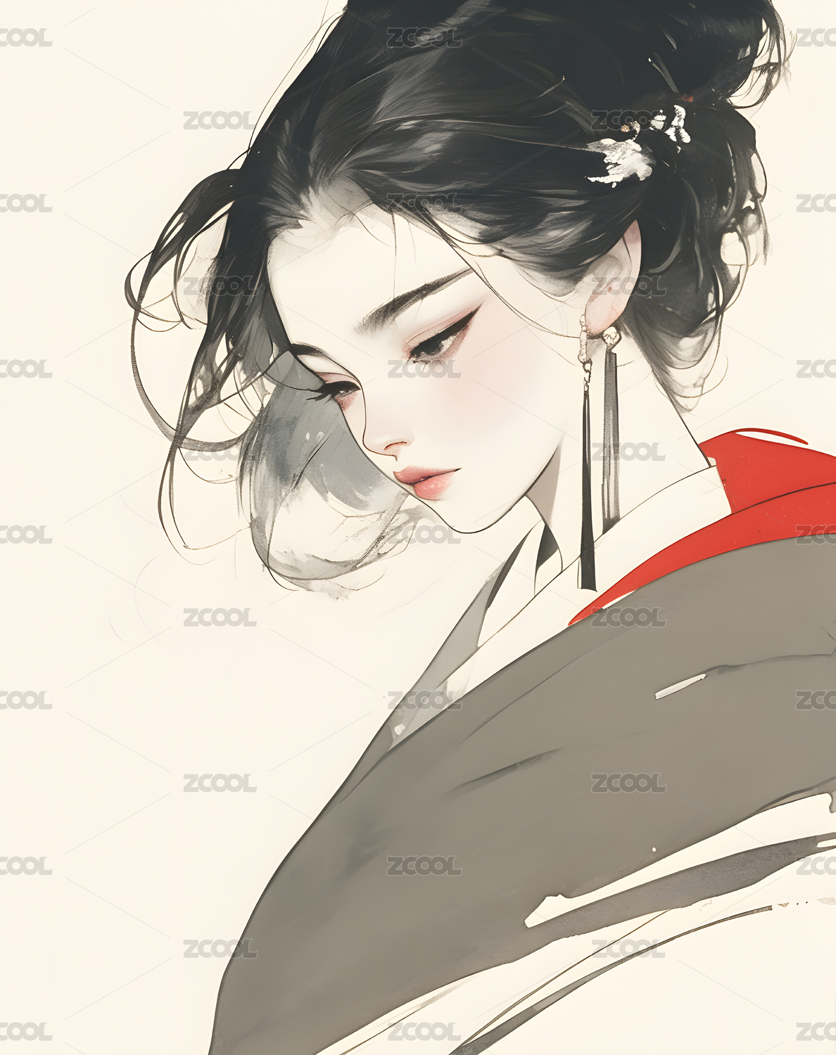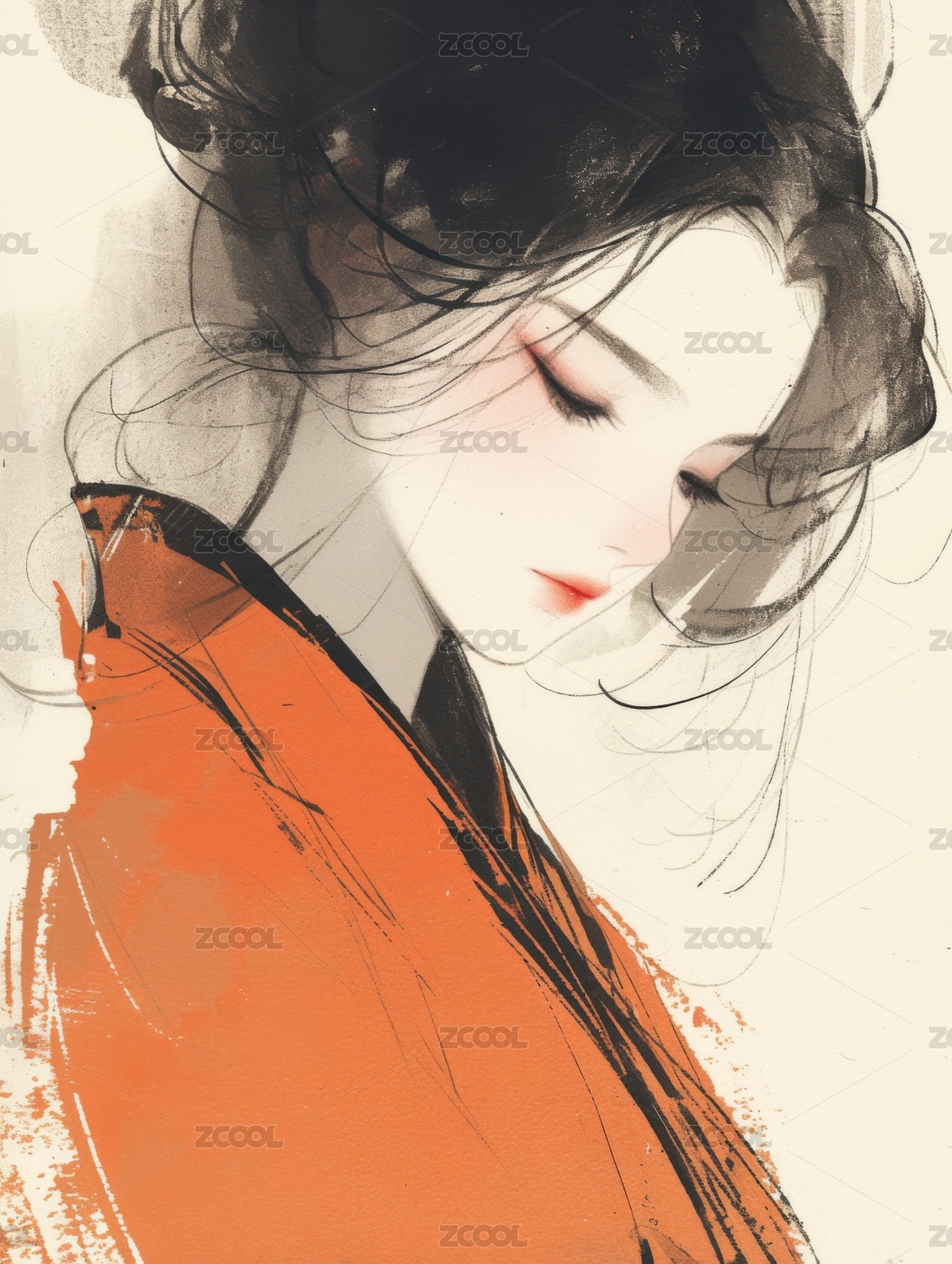 水墨风格的女性肖像画
