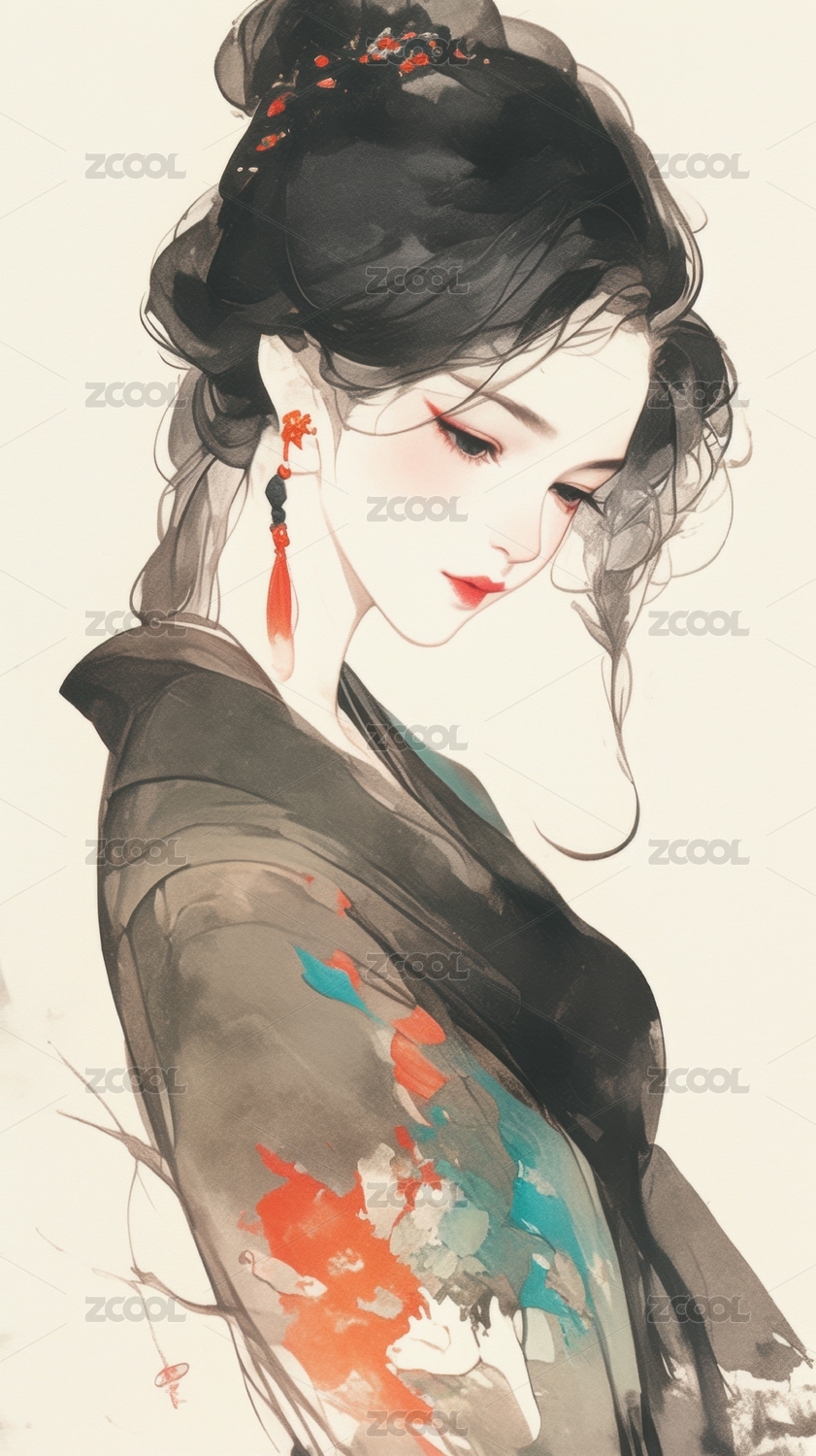 古典美人水墨服饰