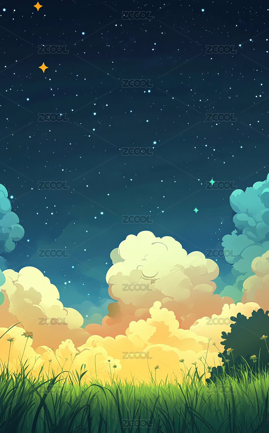浩瀚星河,流星雨在天空划过,草地做搭配