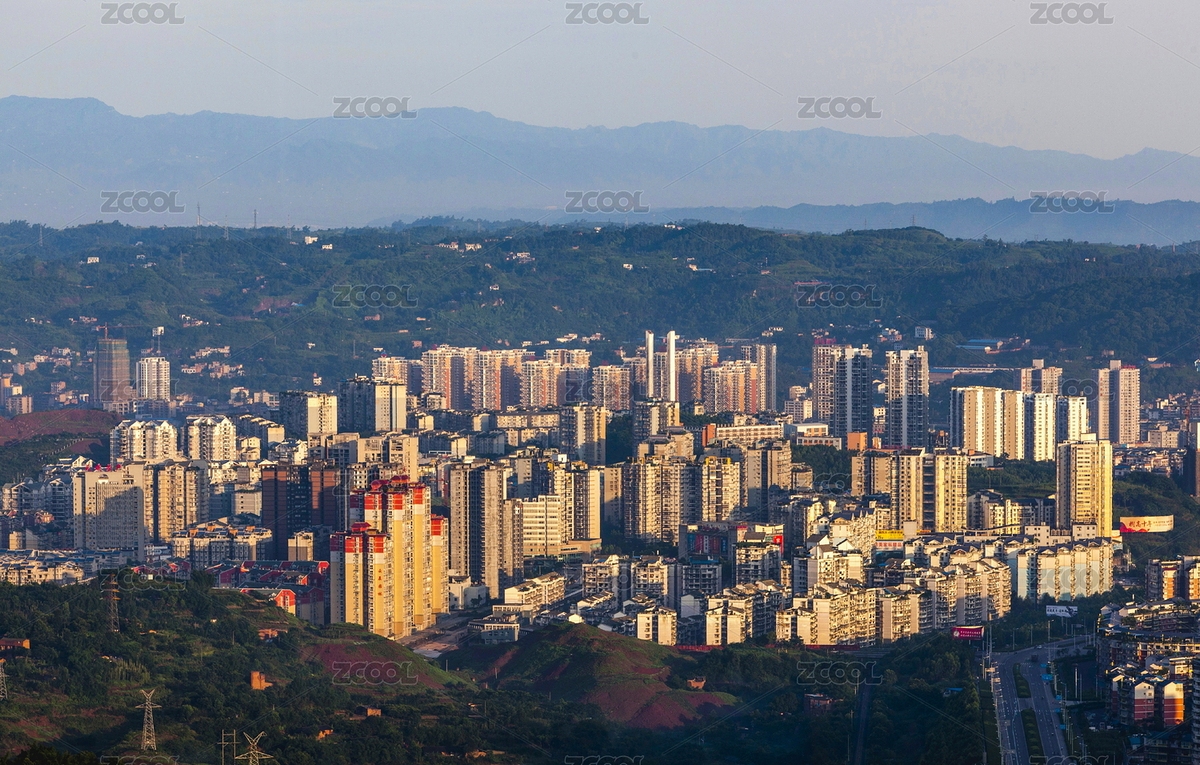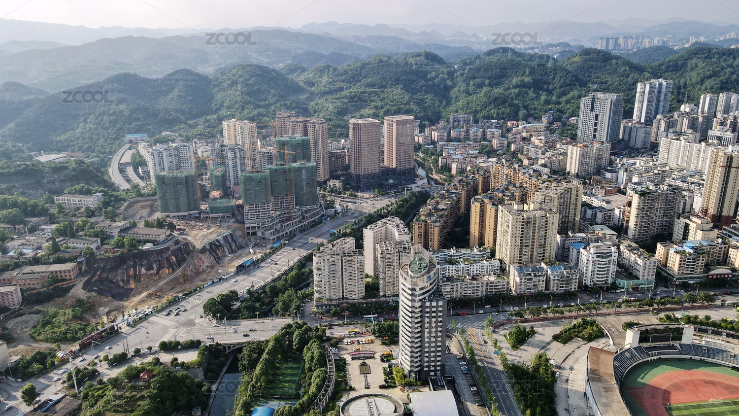 素材,背景,横构图,俯拍,建筑,城市,城市建筑,高层建筑,现代建筑,山脉