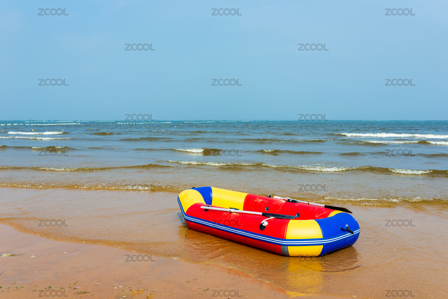 停泊在沙滩上的冲锋舟
