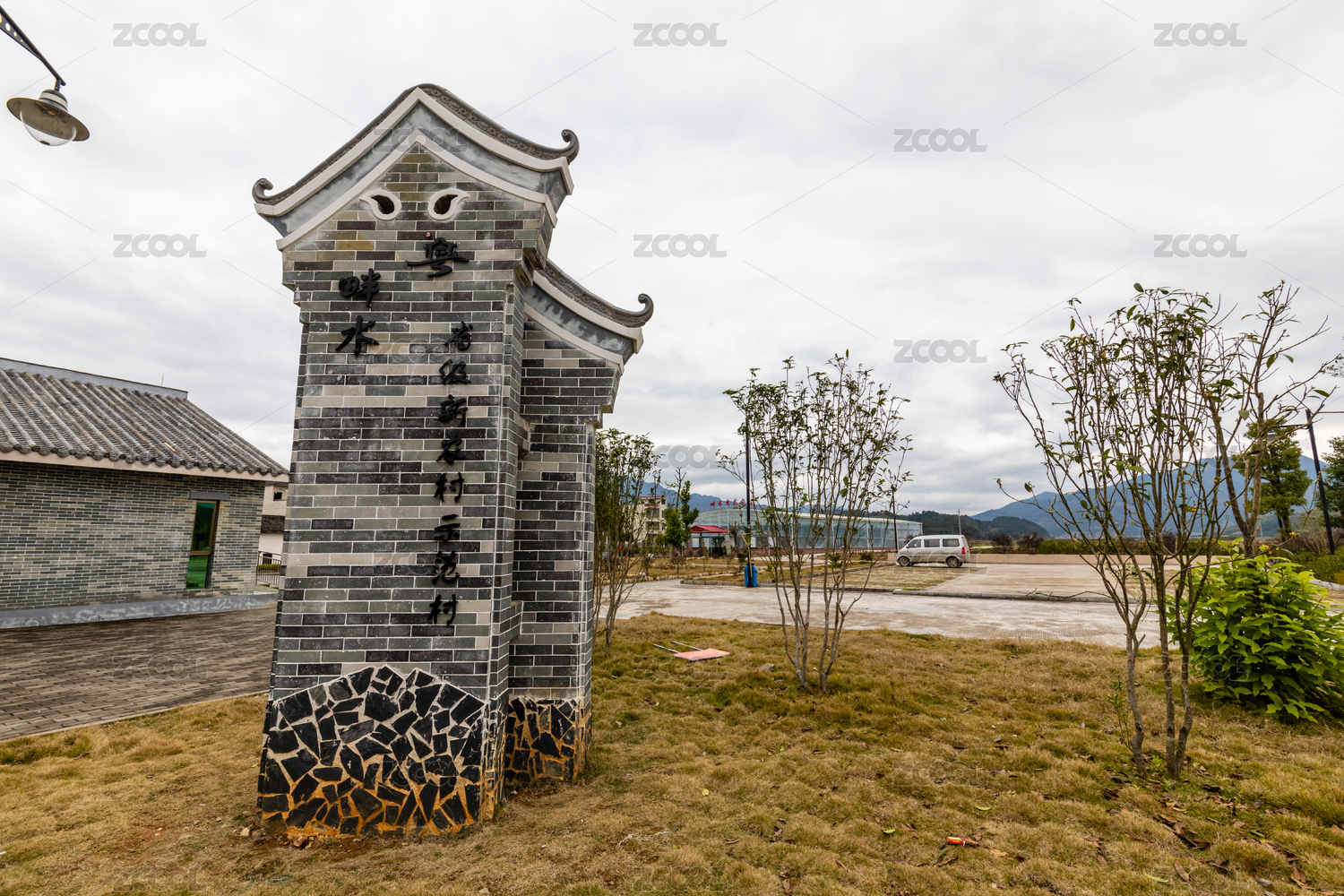 蛟洋红色记忆长廊边的画有红军军旗的石头