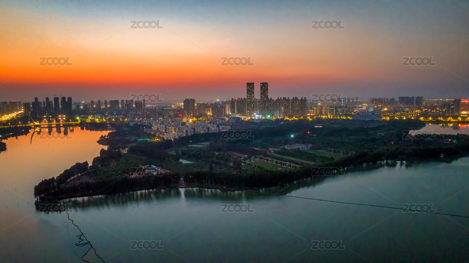 湖泊现代城市建筑大楼繁荣夜景高清广告海报
