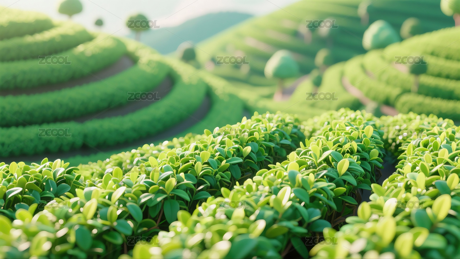 阳光下的茶园