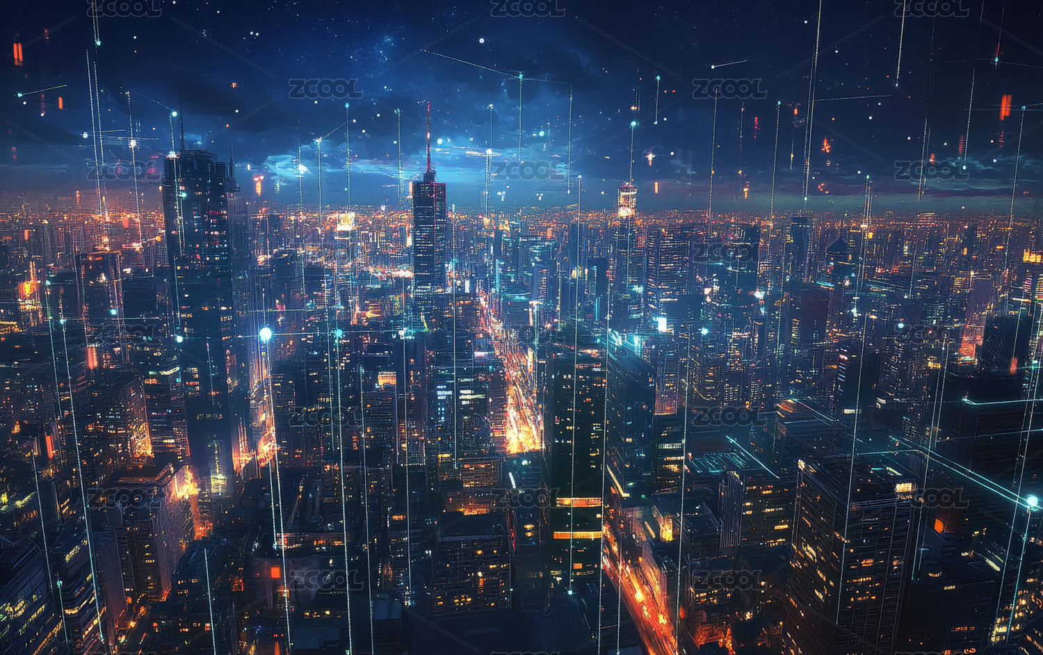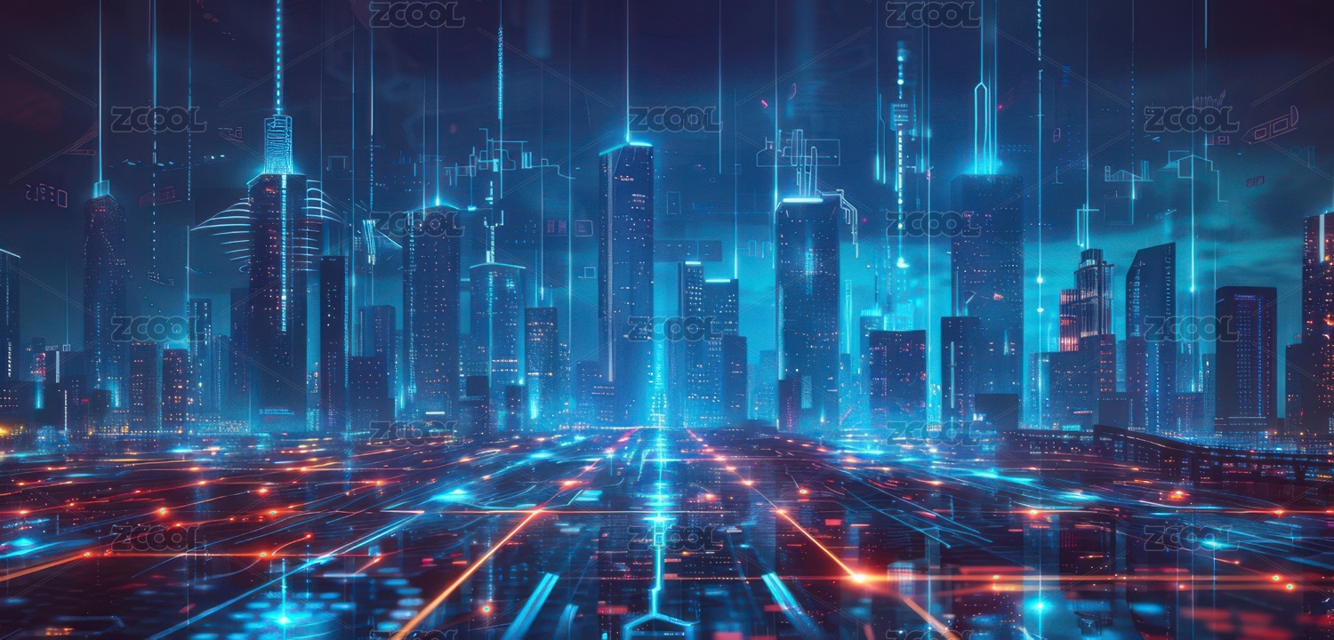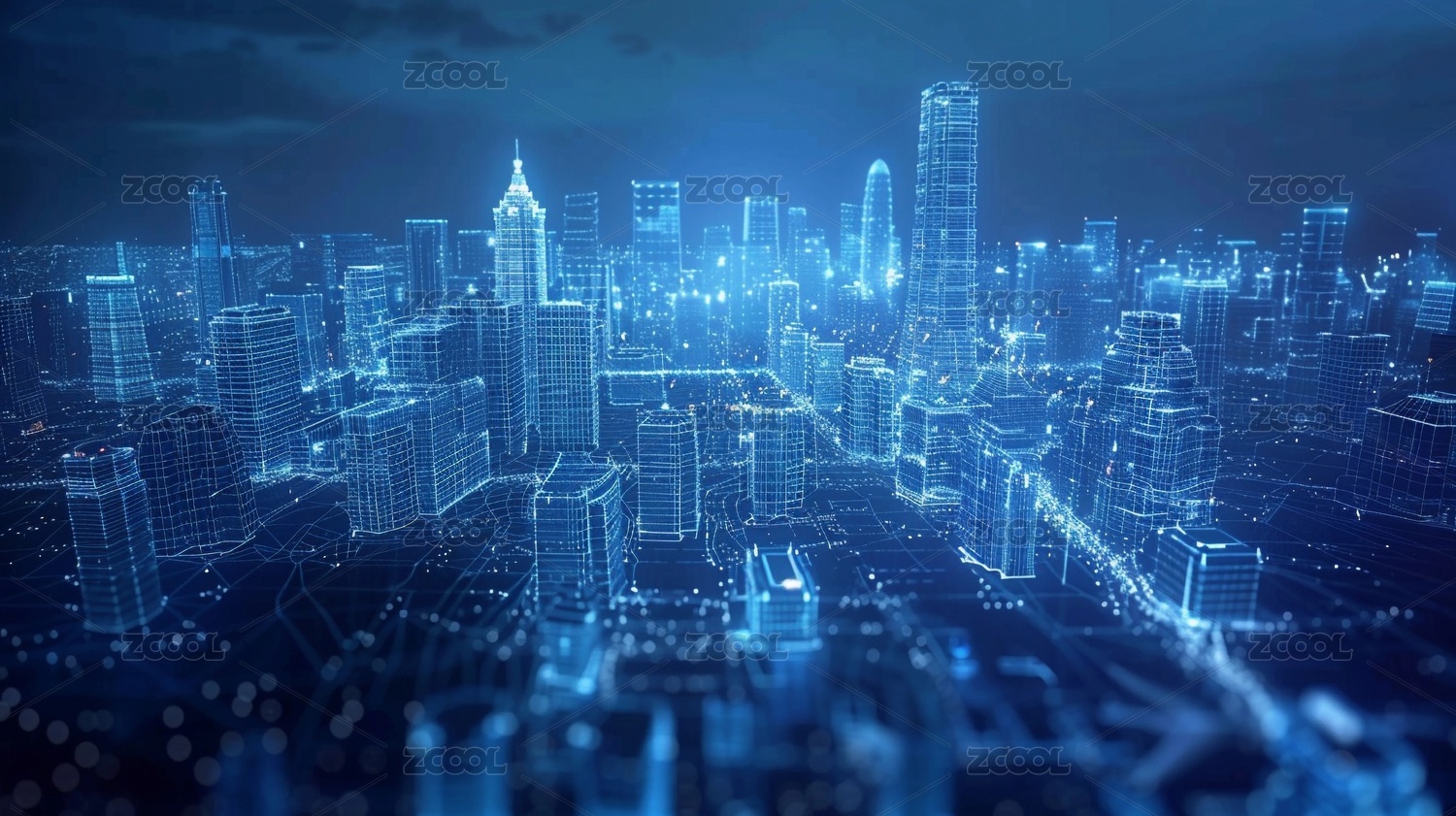 蓝色,科技,光影,光点,未来,城市,建筑,楼房,楼群,建筑群