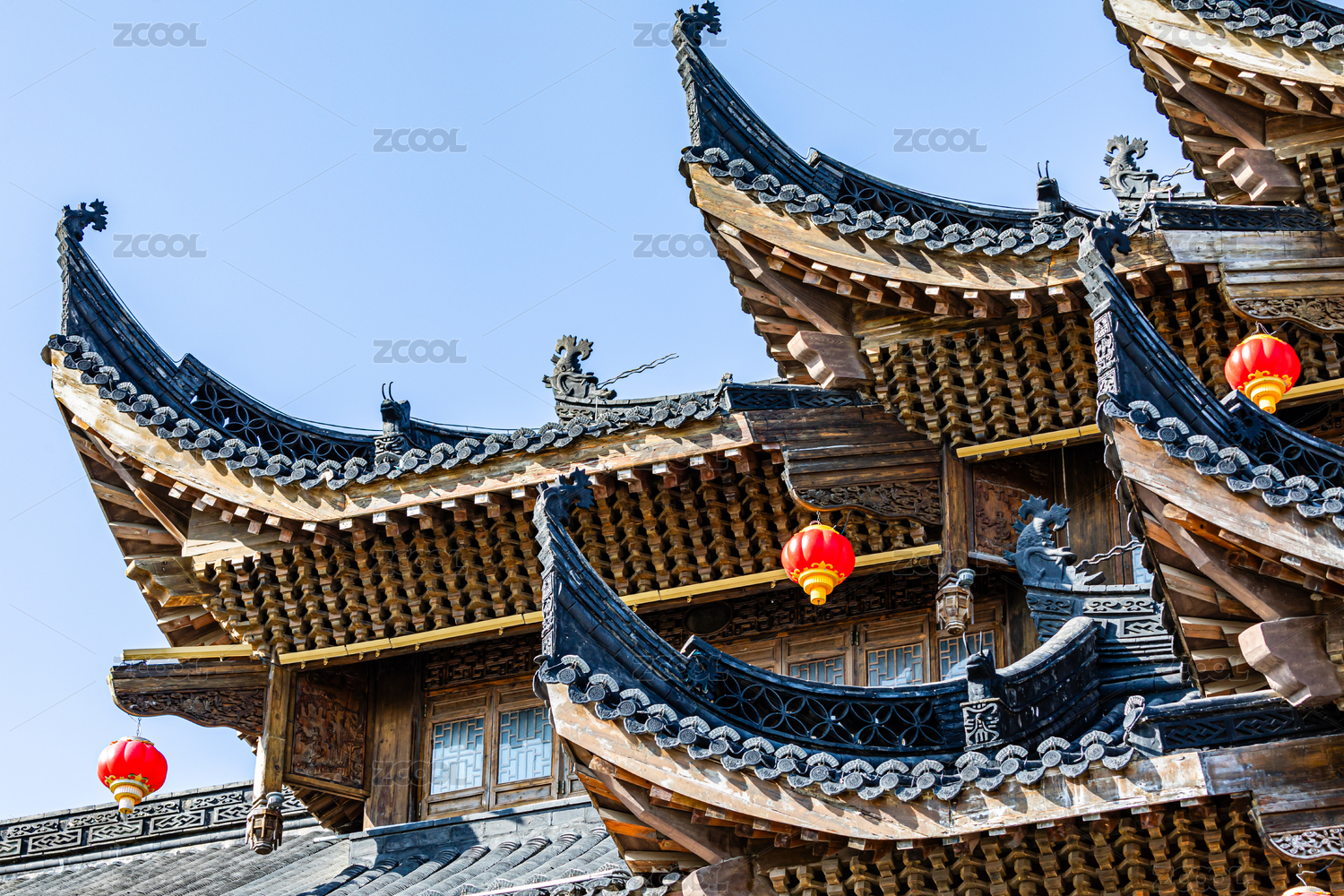 鸠兹古镇徽州古建筑马头墙飞檐特写