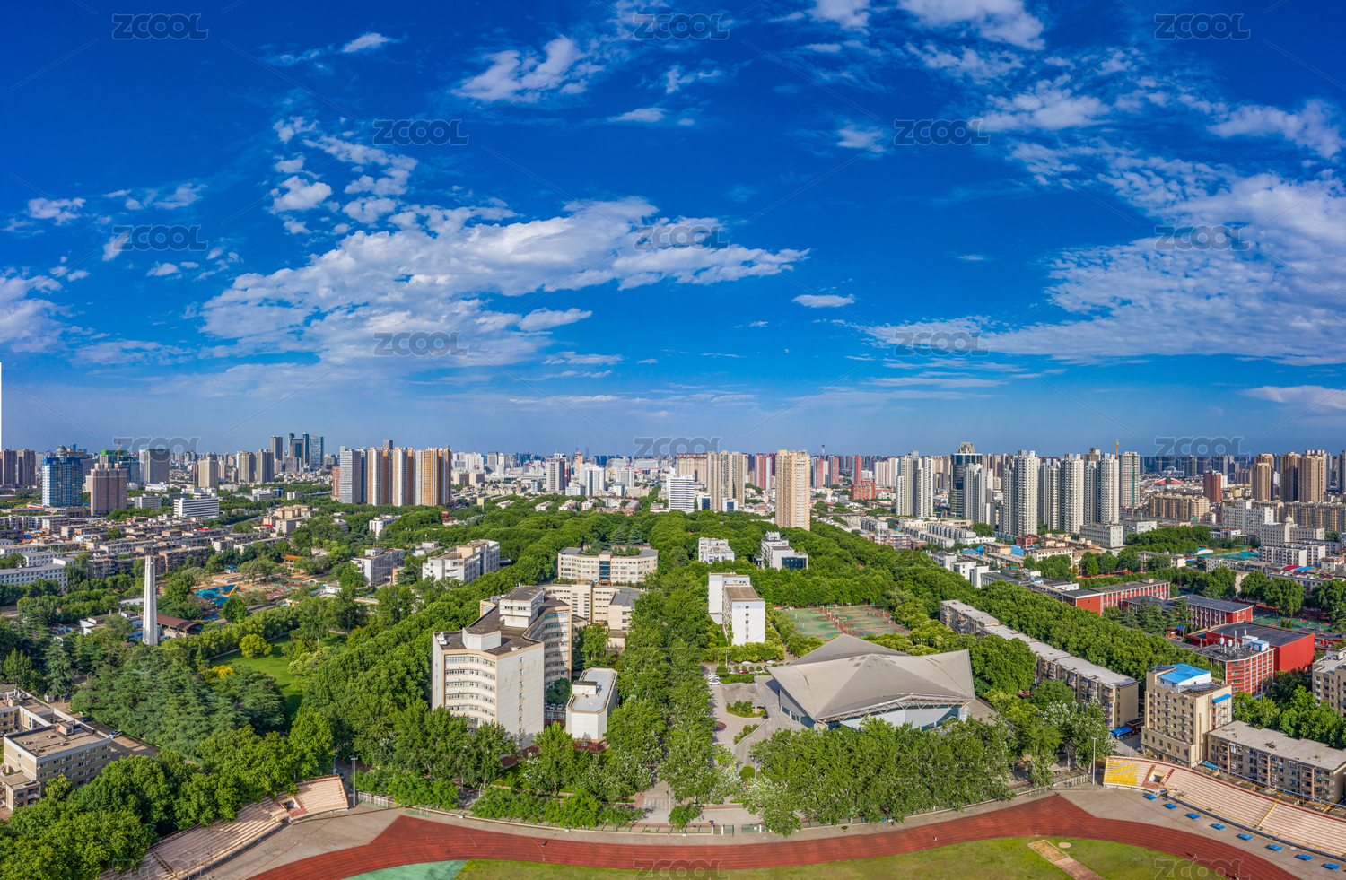 航拍郑州大学南校区体育馆室内体育运动场馆
