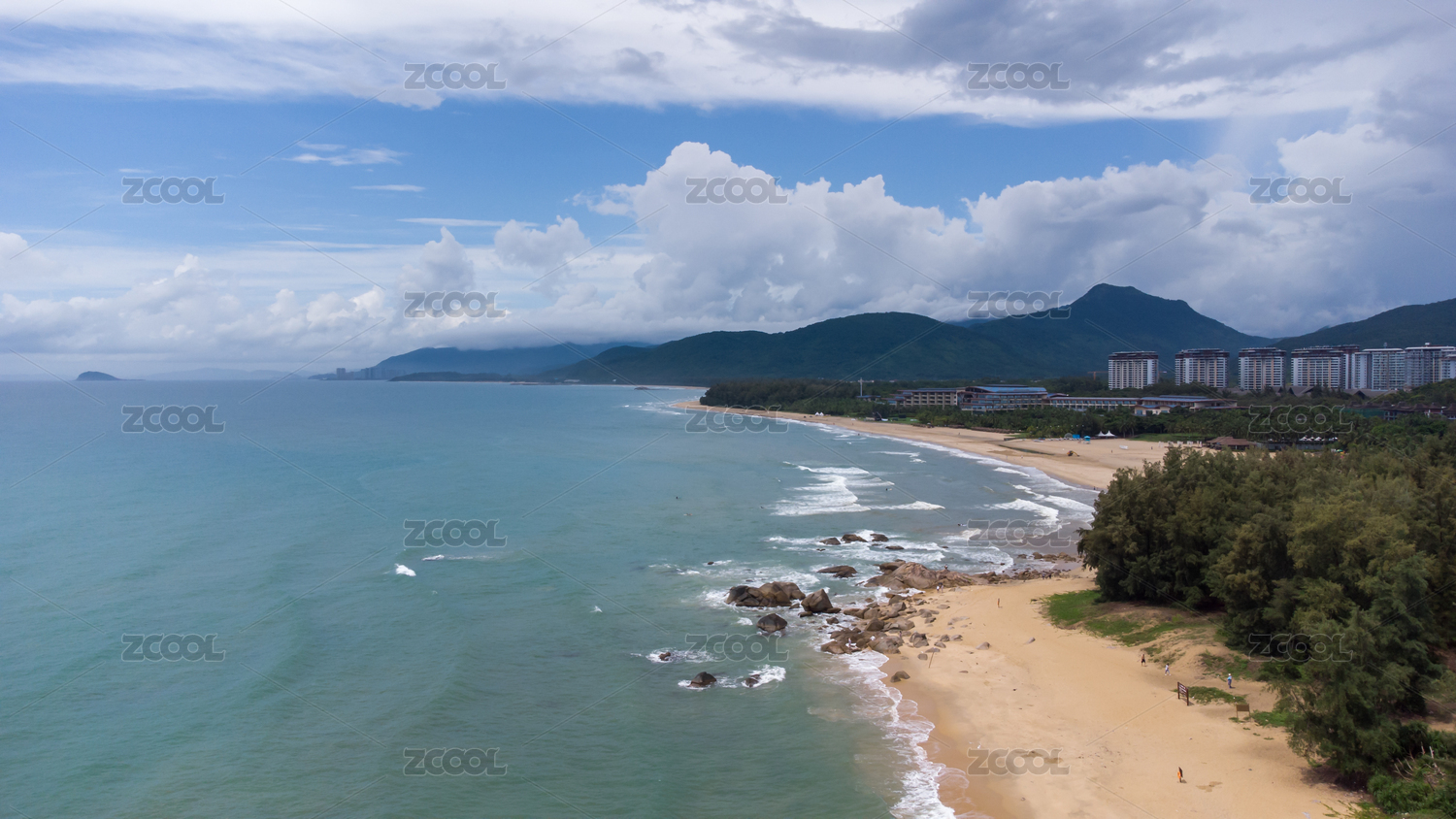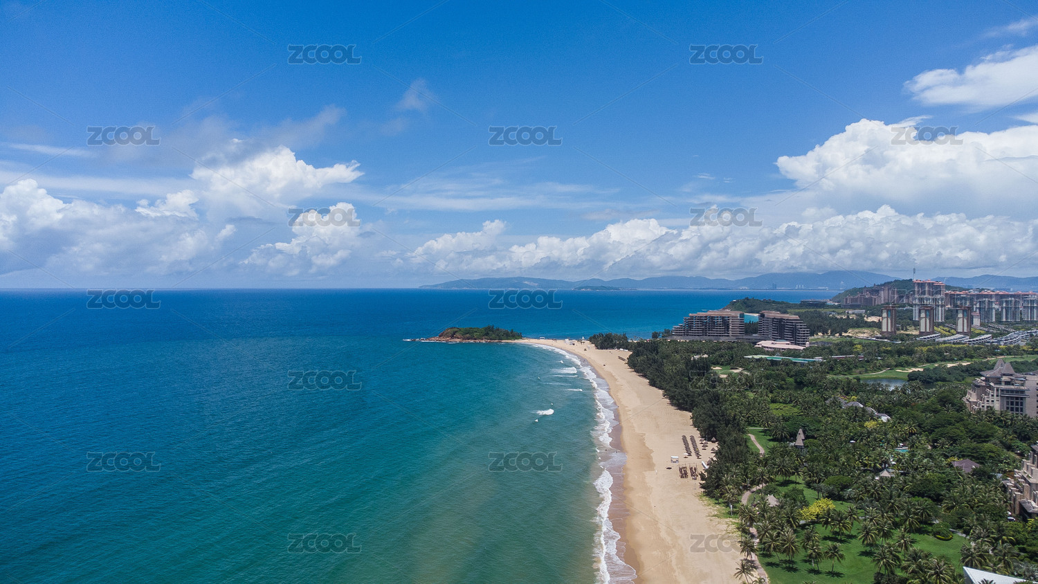 海南,三亚,航拍,三亚海棠湾,三亚海棠广场,海棠湾,蓝天白云,海面,南海,海景