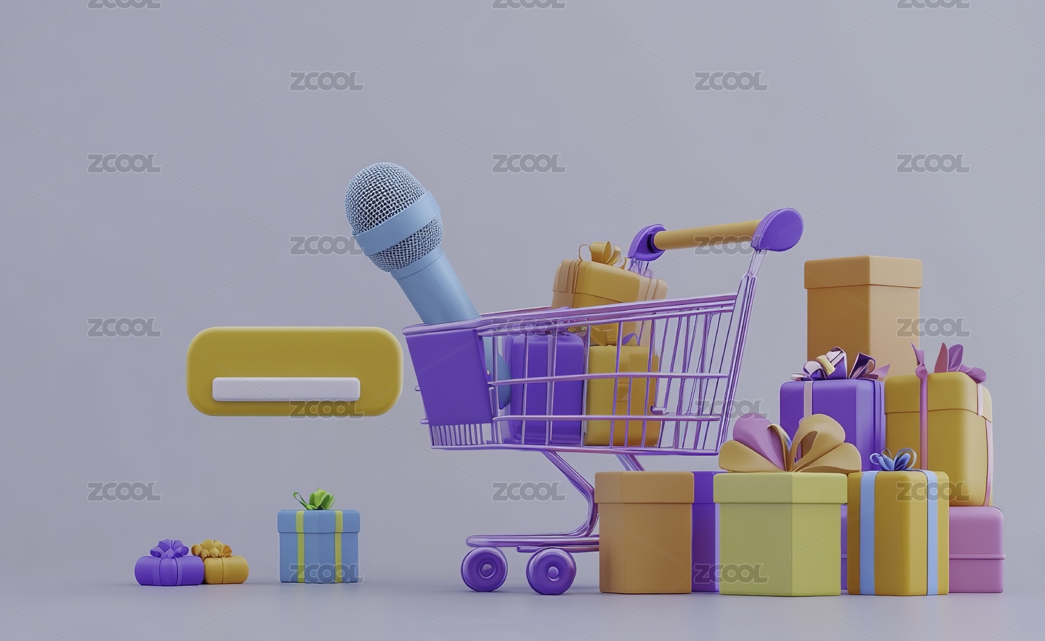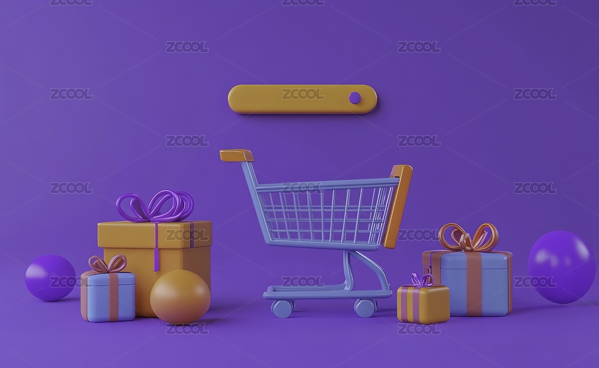 购物车,礼品盒,礼物,3D,渲染,紫色,背景,搜索栏,球,模型