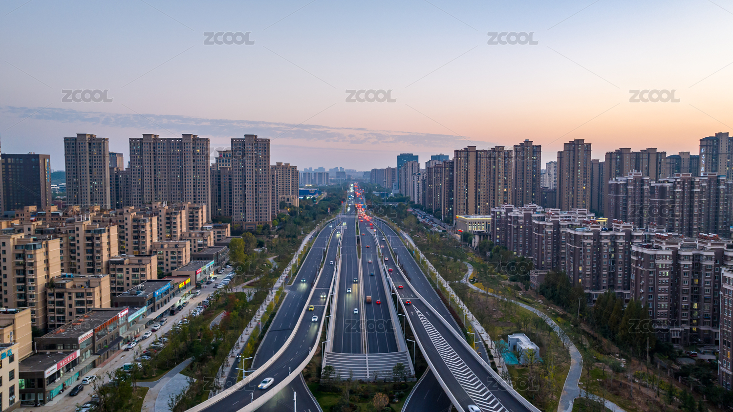 徐州市环球港城东大道快速路高架立交桥夕阳