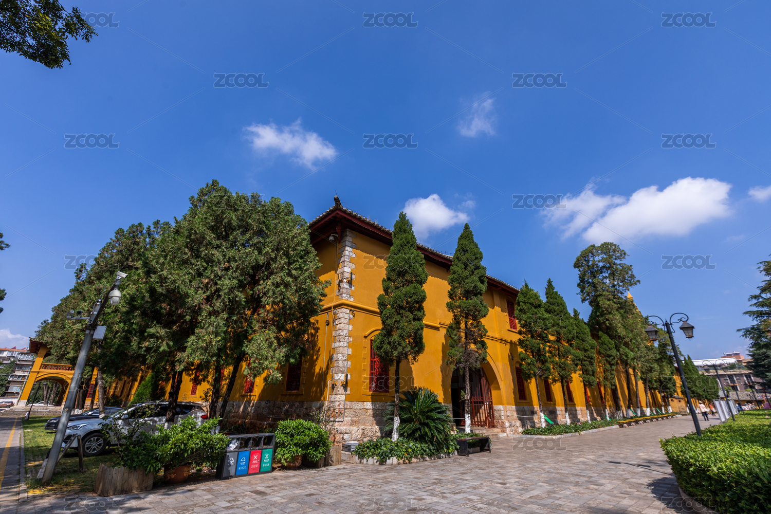 云南陆军讲武堂,走马转角楼,砖木结构,四合院,阅操楼,建筑遗产,蓝天白云,风景,云南,昆明