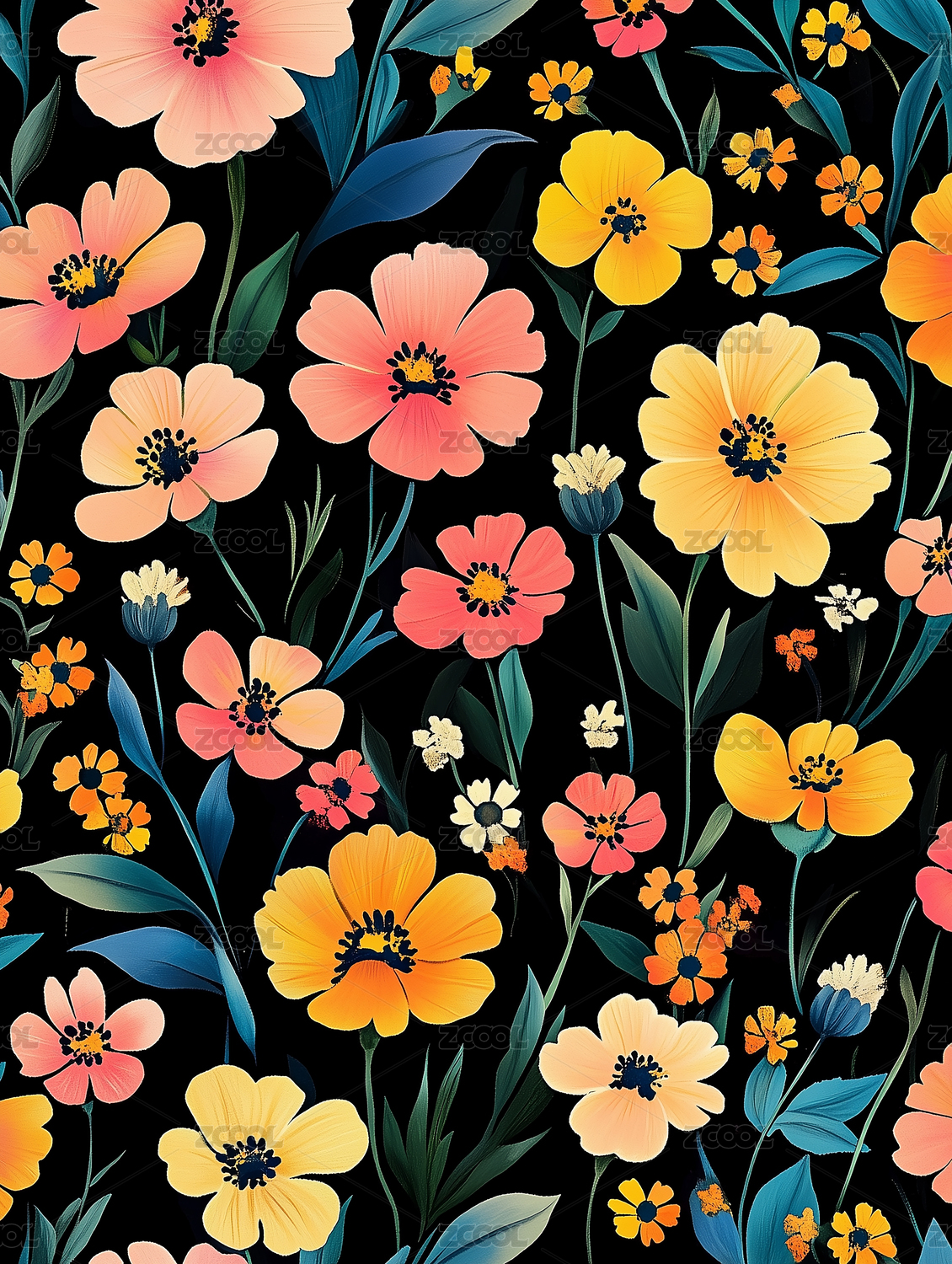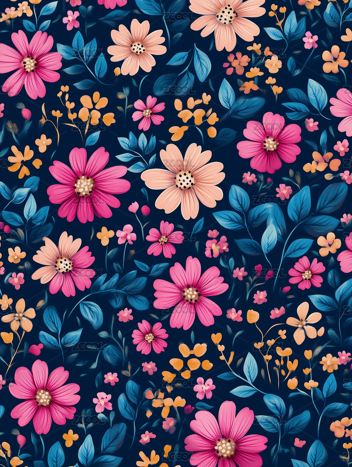 数码复古水彩花卉瓷砖图案抽象海报背景