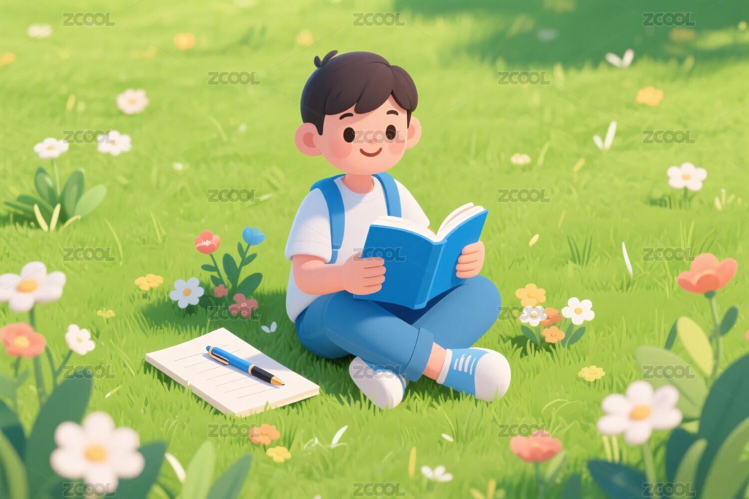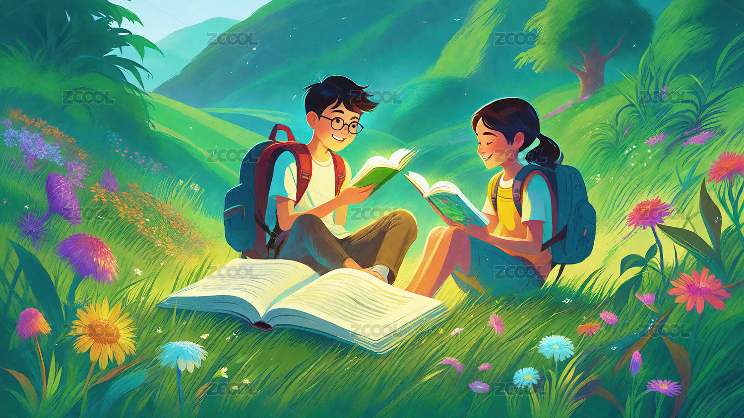 AIGC202402,学生,人物,插画,学校,校园,开学,阅读,小学生
