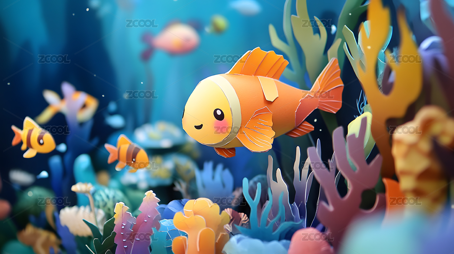 纸艺风格的水下世界