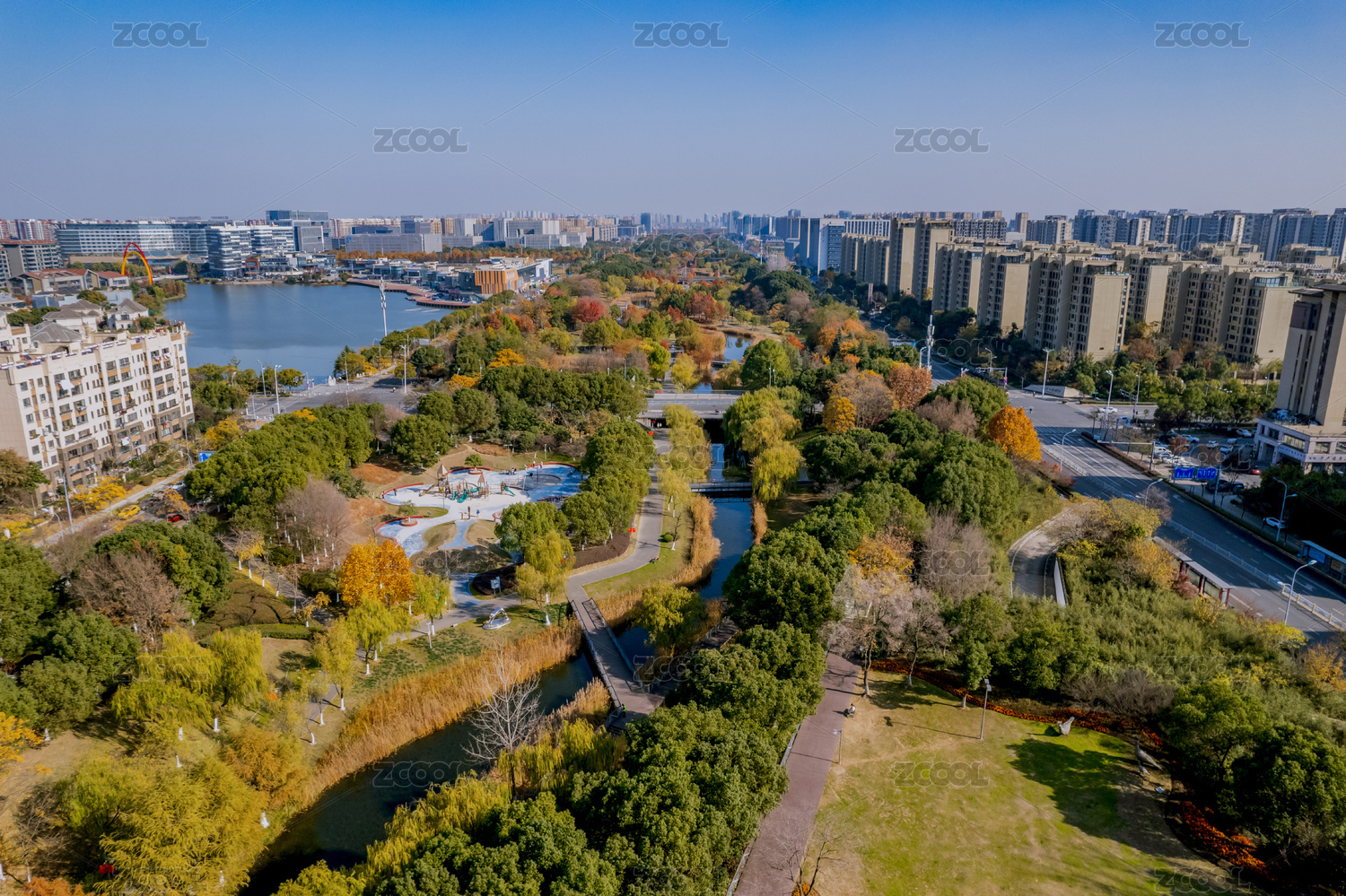 浙江省杭州拱墅区朝晖上塘河秋色航拍