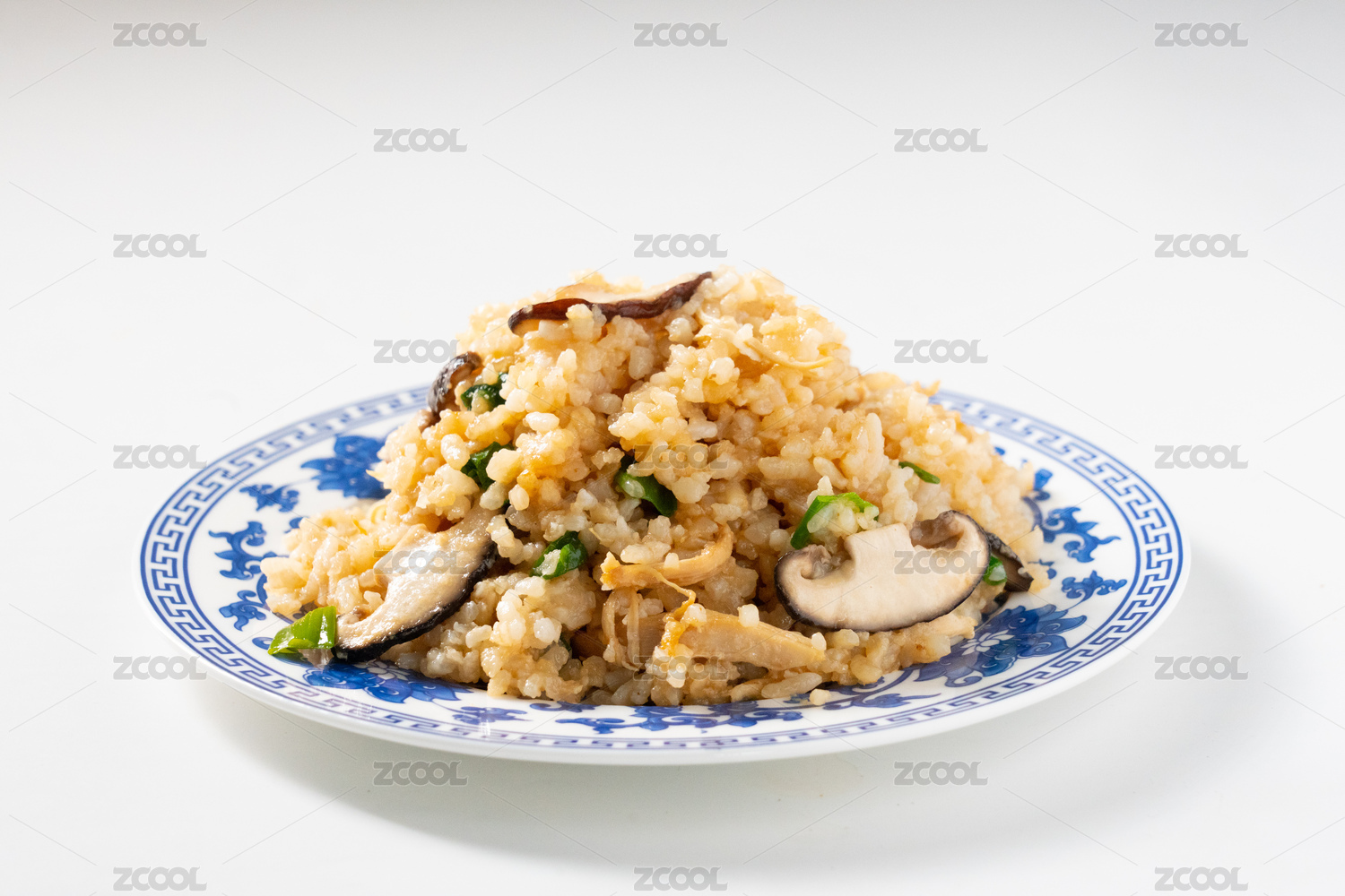白色背景中盘子中的蛋炒饭