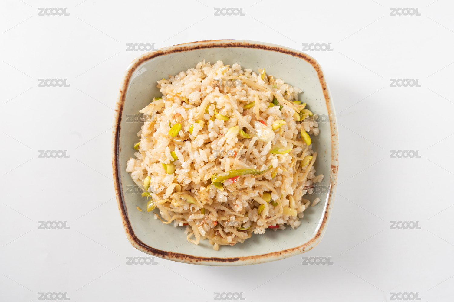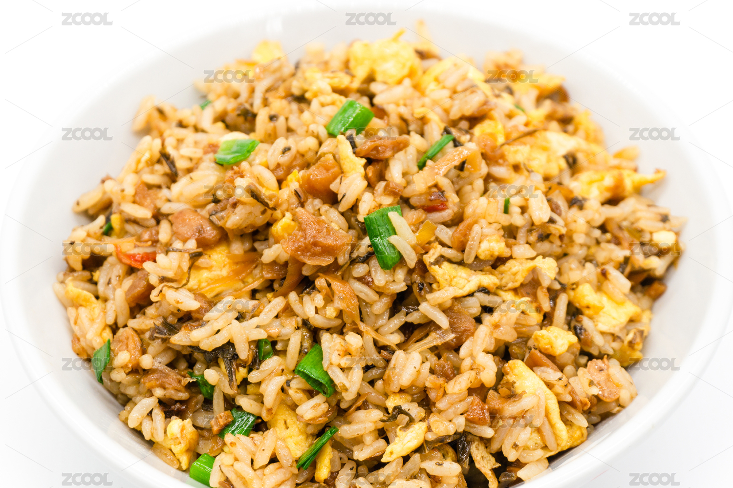 白背景一碗外婆菜炒蛋饭