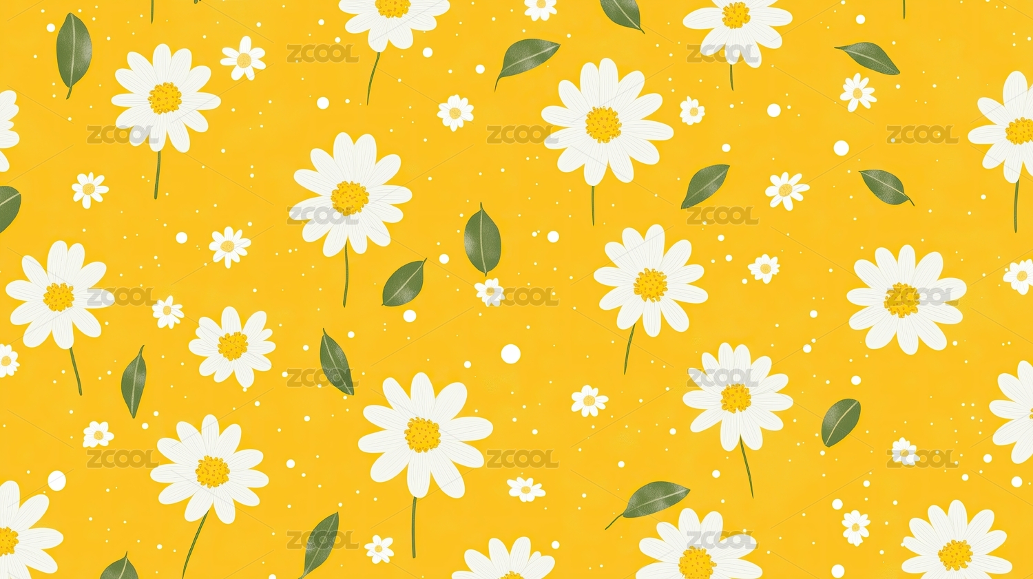 黄色背景下小碎花雏菊图案