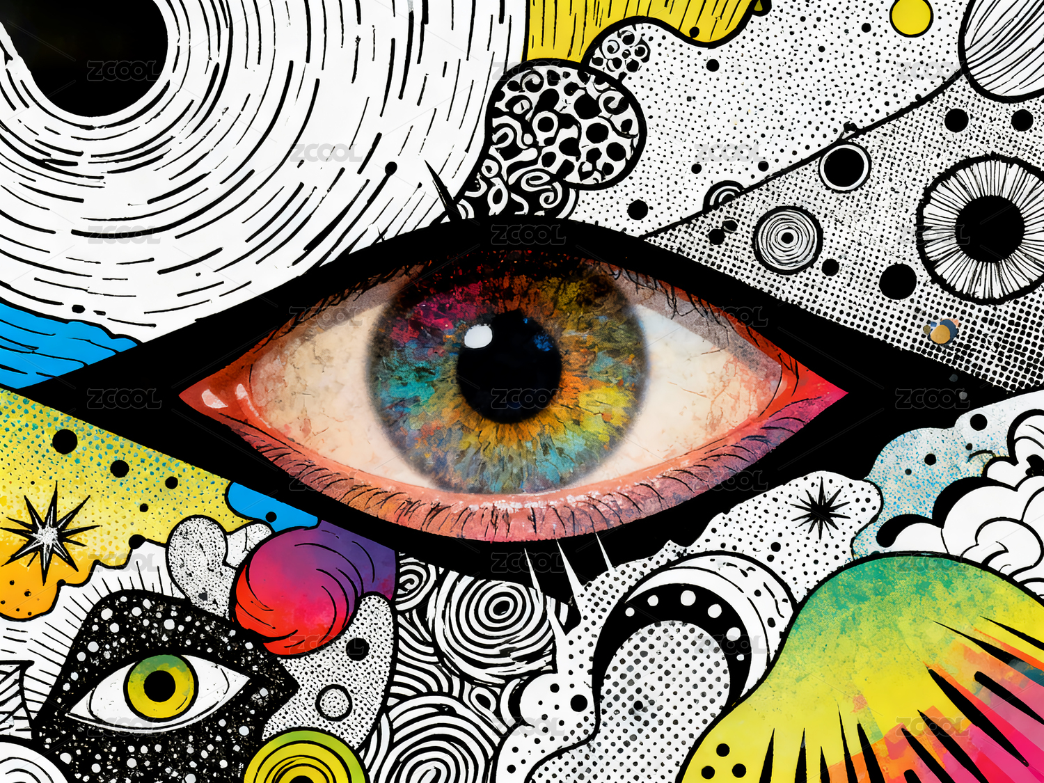 眼睛,色彩,彩色,画作,绘画,抽象,眼球,瞳孔,睫毛,颜料