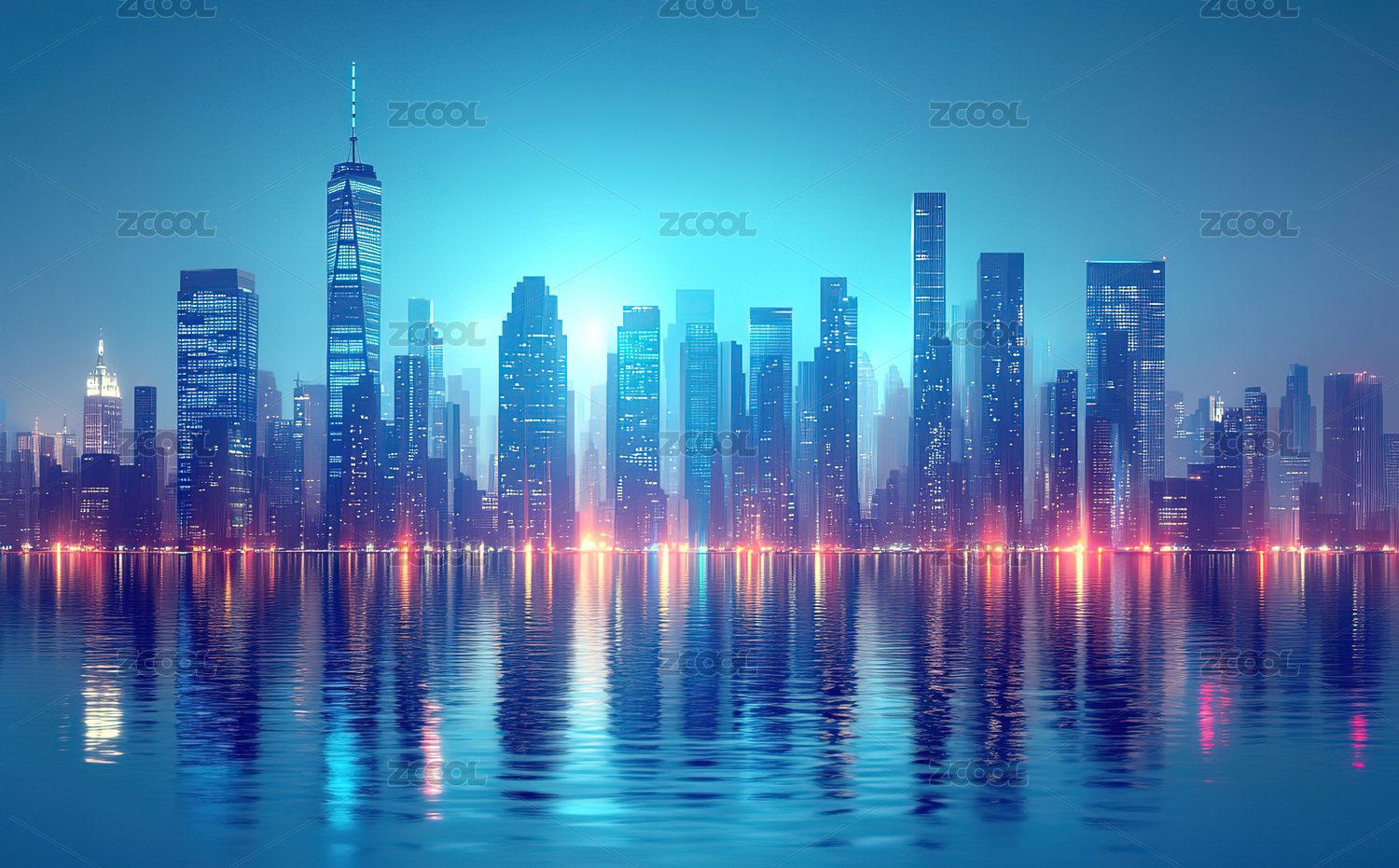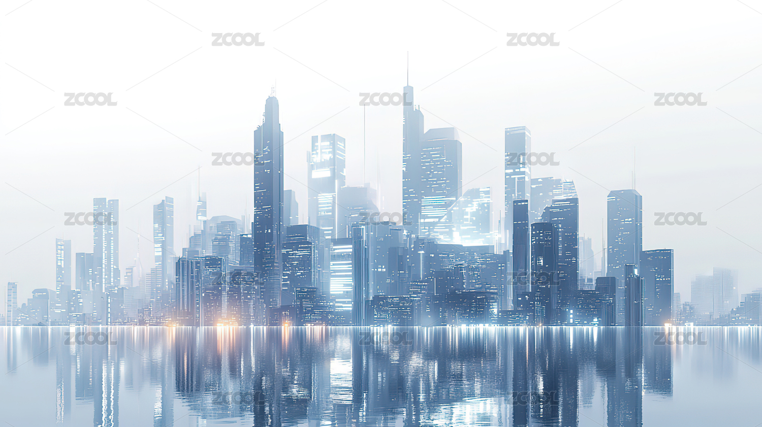 水面,城市,都市,建筑,天际线,倒影,高楼,大厦,纯色,背景