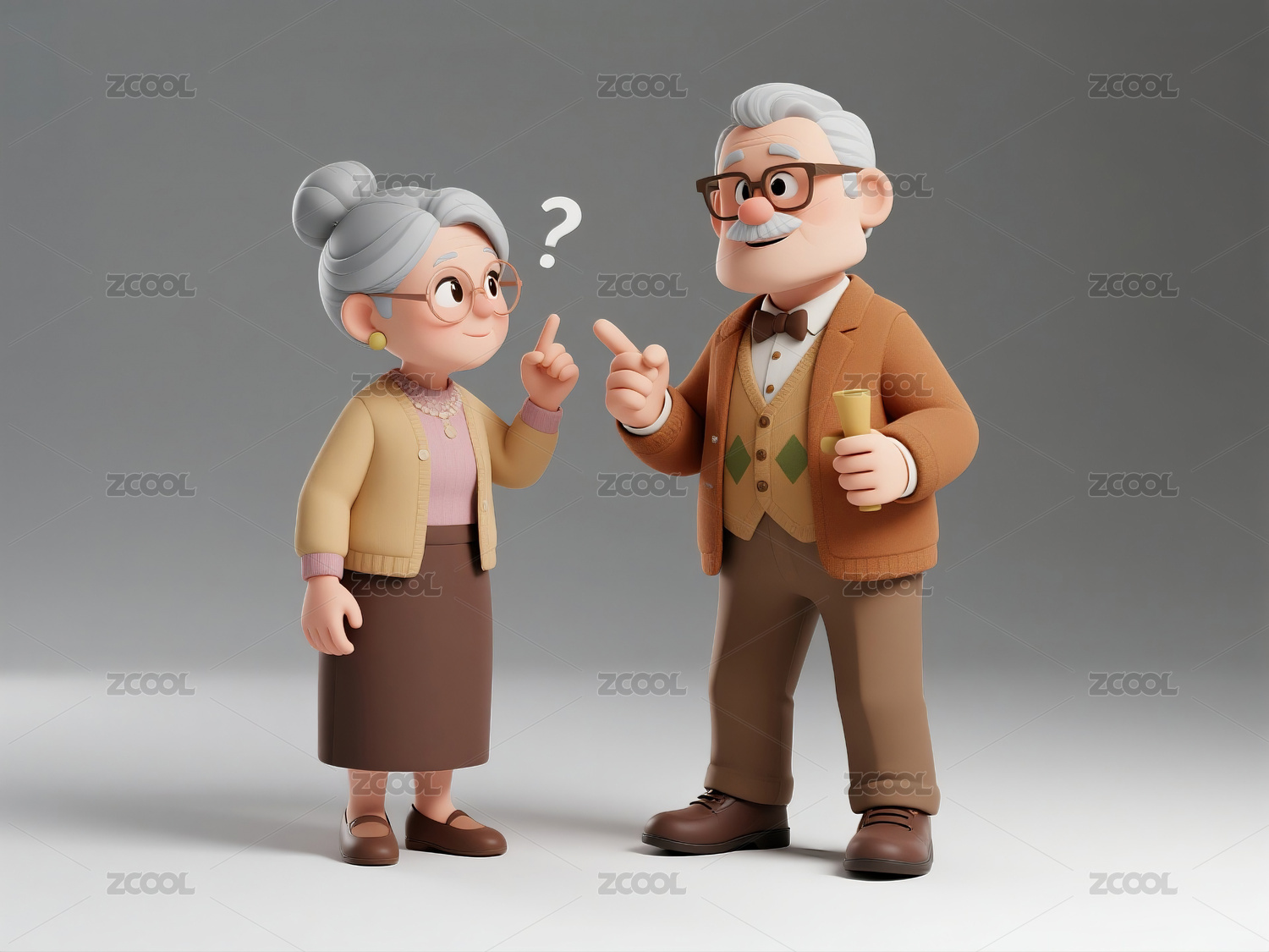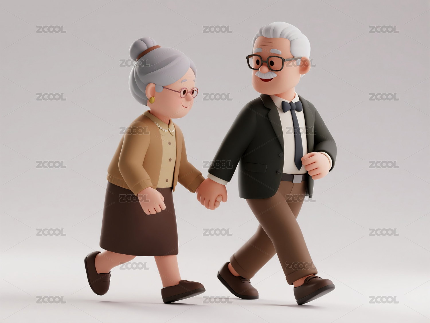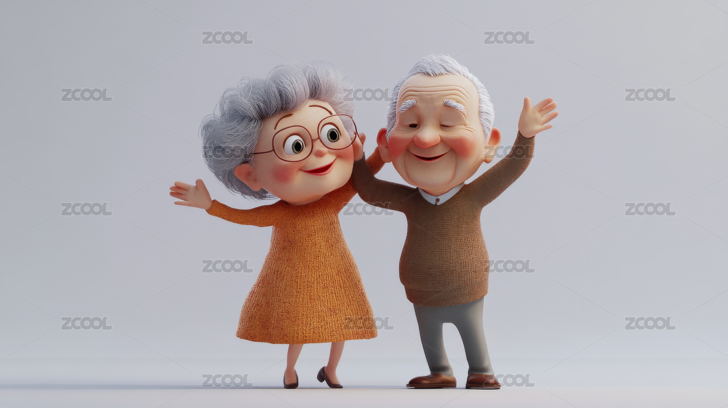 爷爷奶奶微笑合照,3D卡通老人重阳节概念