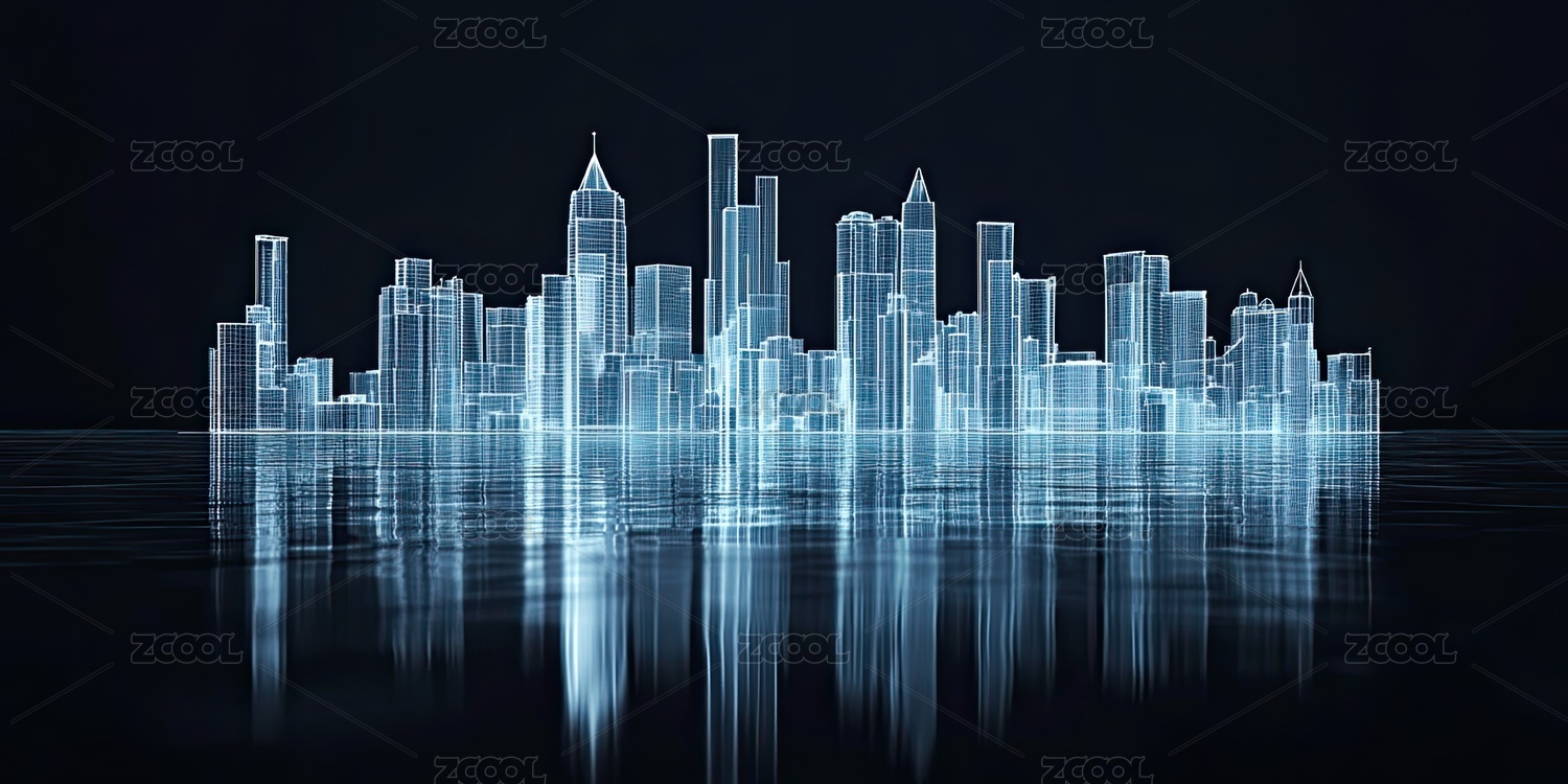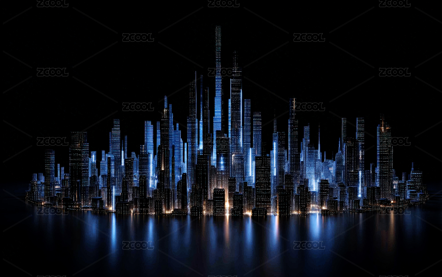 城市,夜景,建筑,灯光,反射,水面,蓝色,高楼,天际线,现代